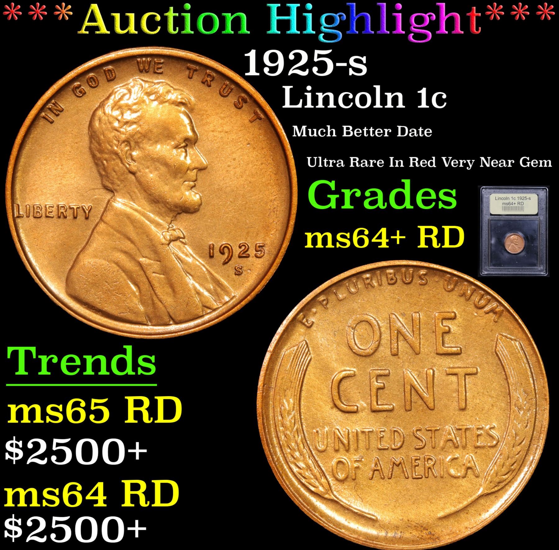 ***Auction Highlight*** 1925-s Lincoln Cent 1c Graded Choice+ Unc RD By USCG. Much Better Date Ultra Rare In Red Very Near Gem A Corey's Pick, Bid to Win, Don't let it get Away Coin