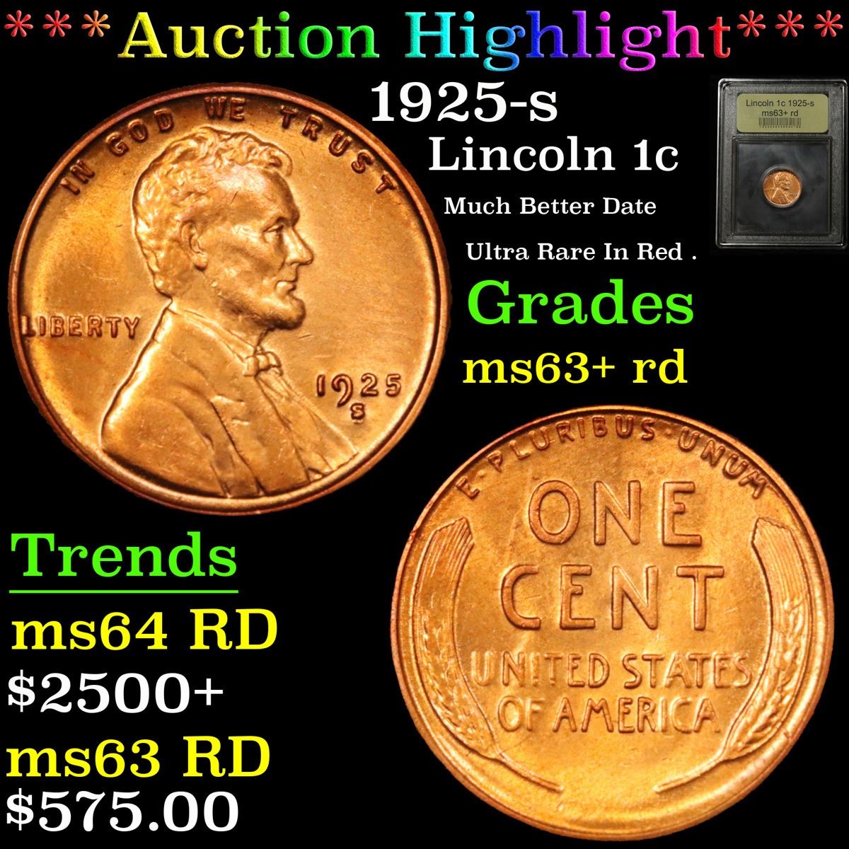***Auction Highlight*** 1925-s Much Better Date Ultra Rare In Red . Lincoln Cent 1c Graded Select+ Unc RD by USCG. A Corey's Pick, Bid to Win, Don't let it get Away, you might not find its equal Coin