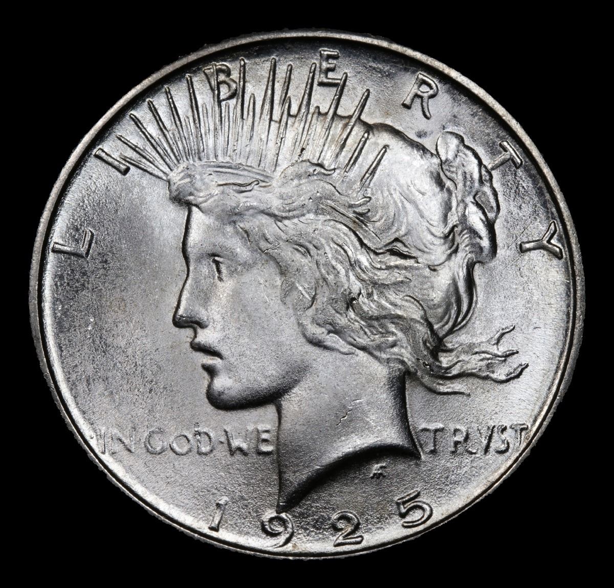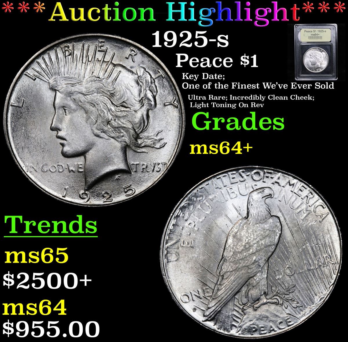 ***Auction Highlight*** 1925-s Key Date; One of the Finest We've Ever Sold Ultra Rare; Incredibly Clean Cheek; Light Toning On Rev Peace Dollar $1 Graded Choice+ Unc By USCG. A Corey's Pick, Bid to Win, Don't let it get Away, you might not find its equal Coin. I give this coin my highest recommendation