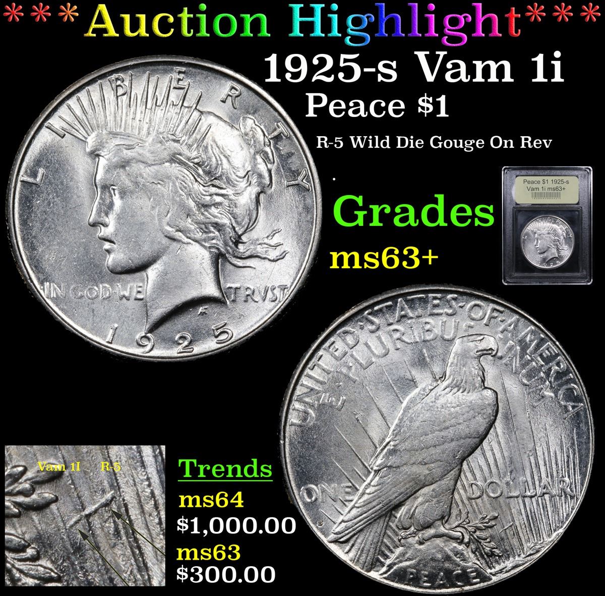 ***Auction Highlight*** 1925-s Vam 1i R-5 Wild Die Gouge On Rev . Peace Dollar $1 Graded Select+ Unc By USCG. A Corey's Pick, Bid to Win Coin