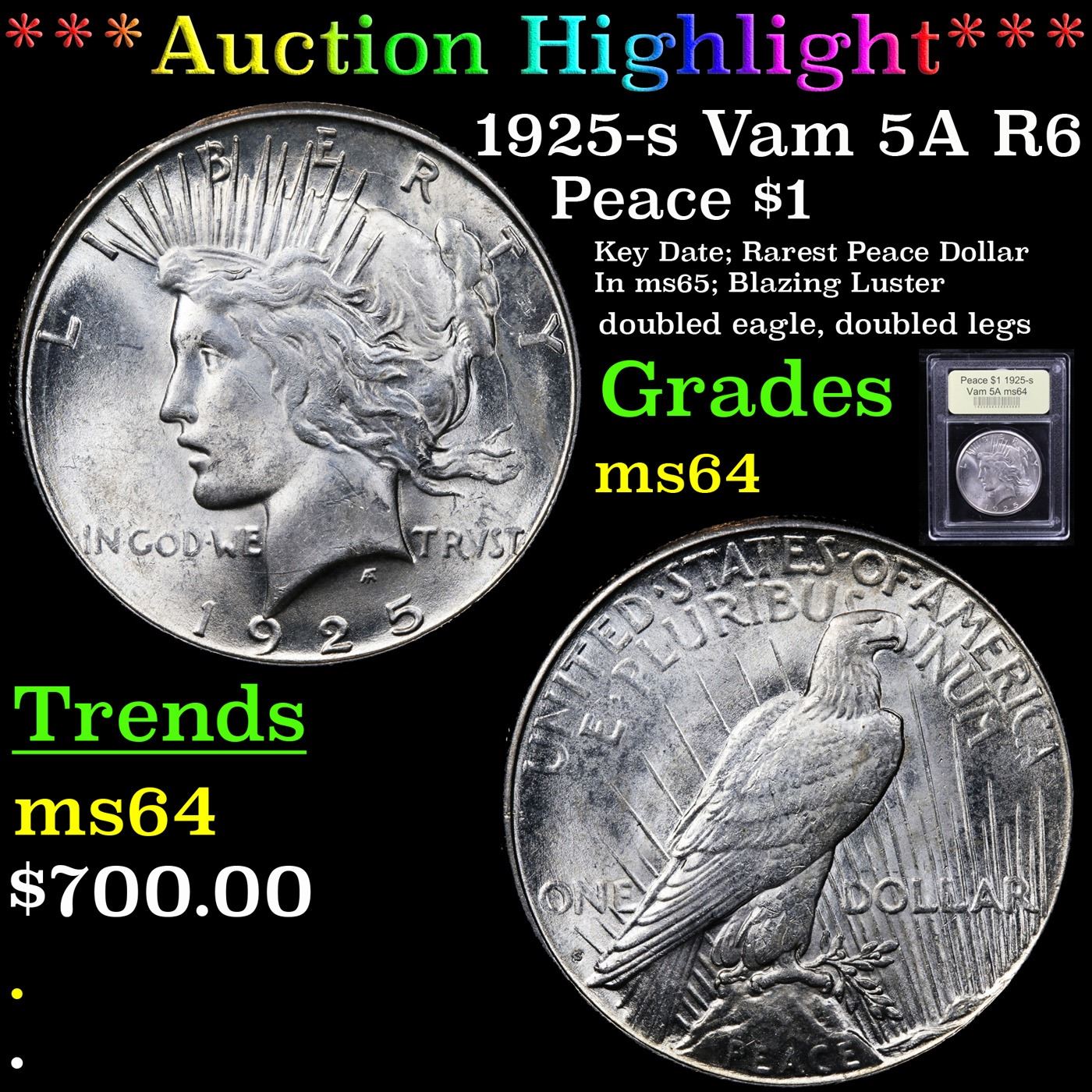 ***Auction Highlight*** 1925-s Vam 5A R6 Peace Dollar $1 Graded Choice Unc By USCG. A Corey's Pick, Bid to Win, Don't let it get Away Coin