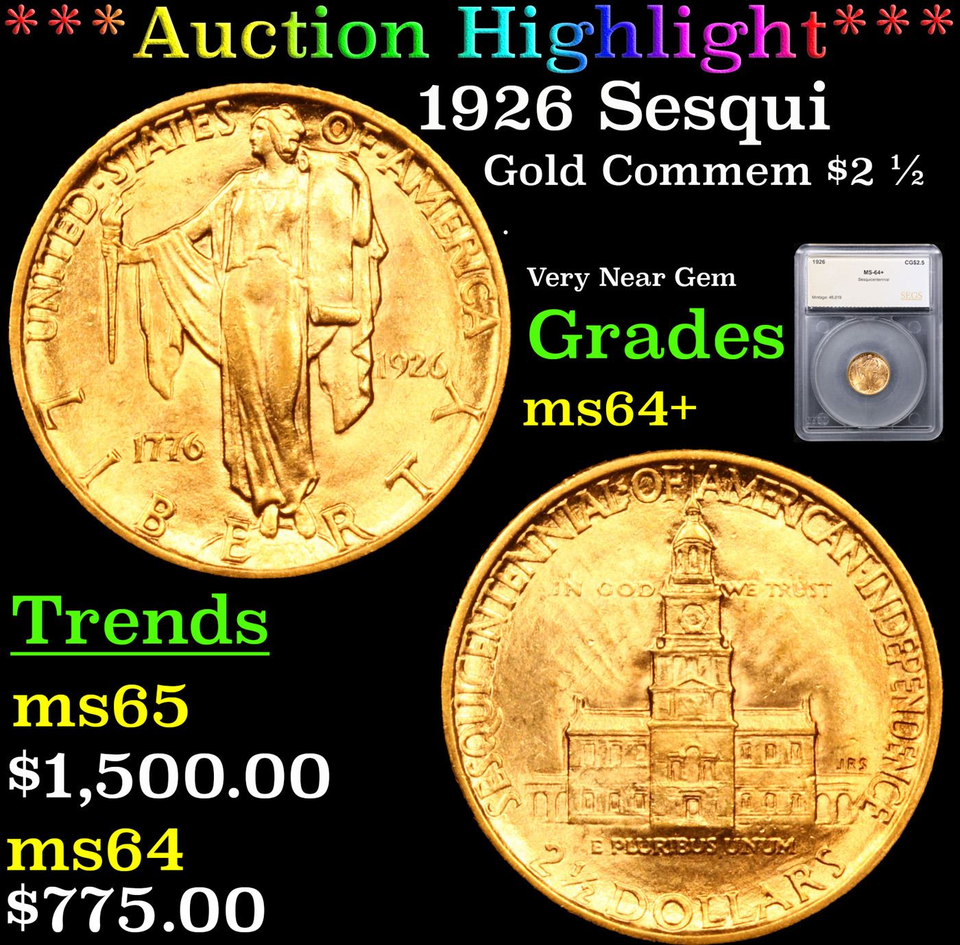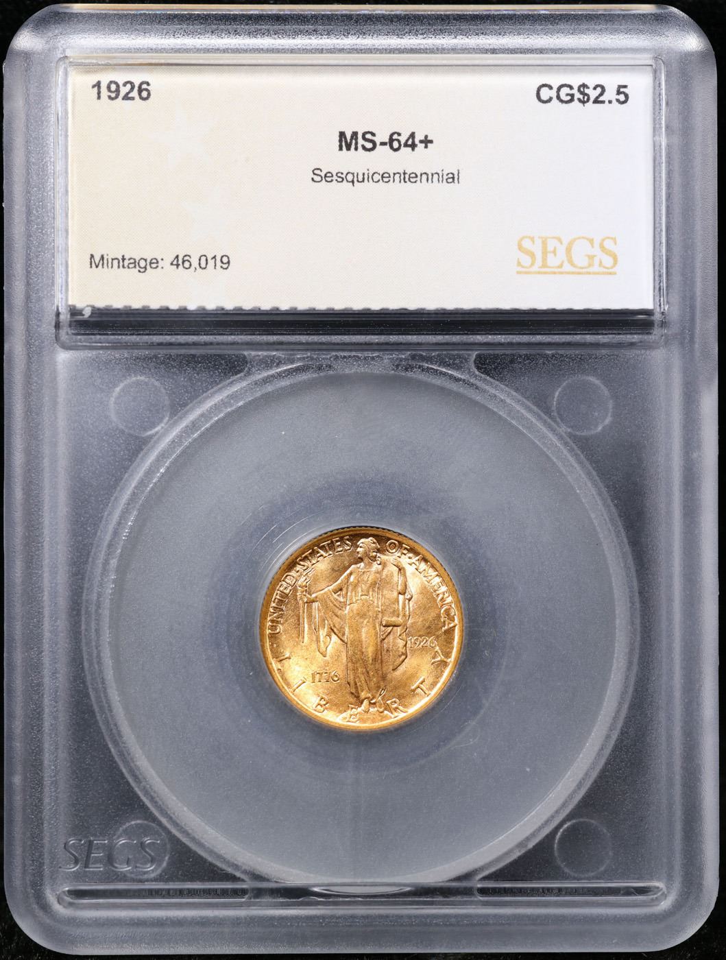 ***Auction Highlight*** 1926 Sesqui Gold Commem $2 1/2 Graded ms64+ By SEGS.