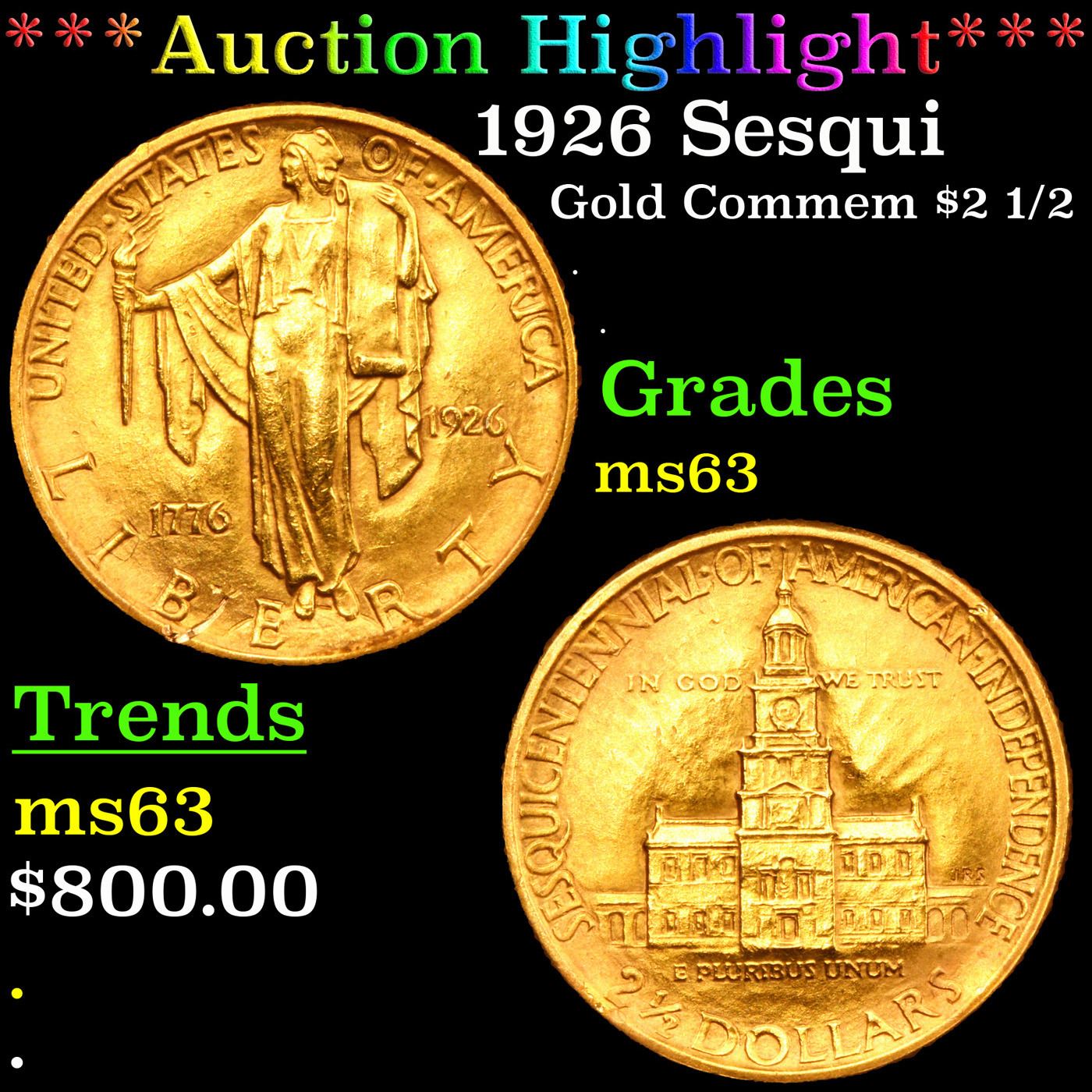 ***Auction Highlight*** 1926 Sesqui Gold Commem $2 1/2 Grades Select Unc.