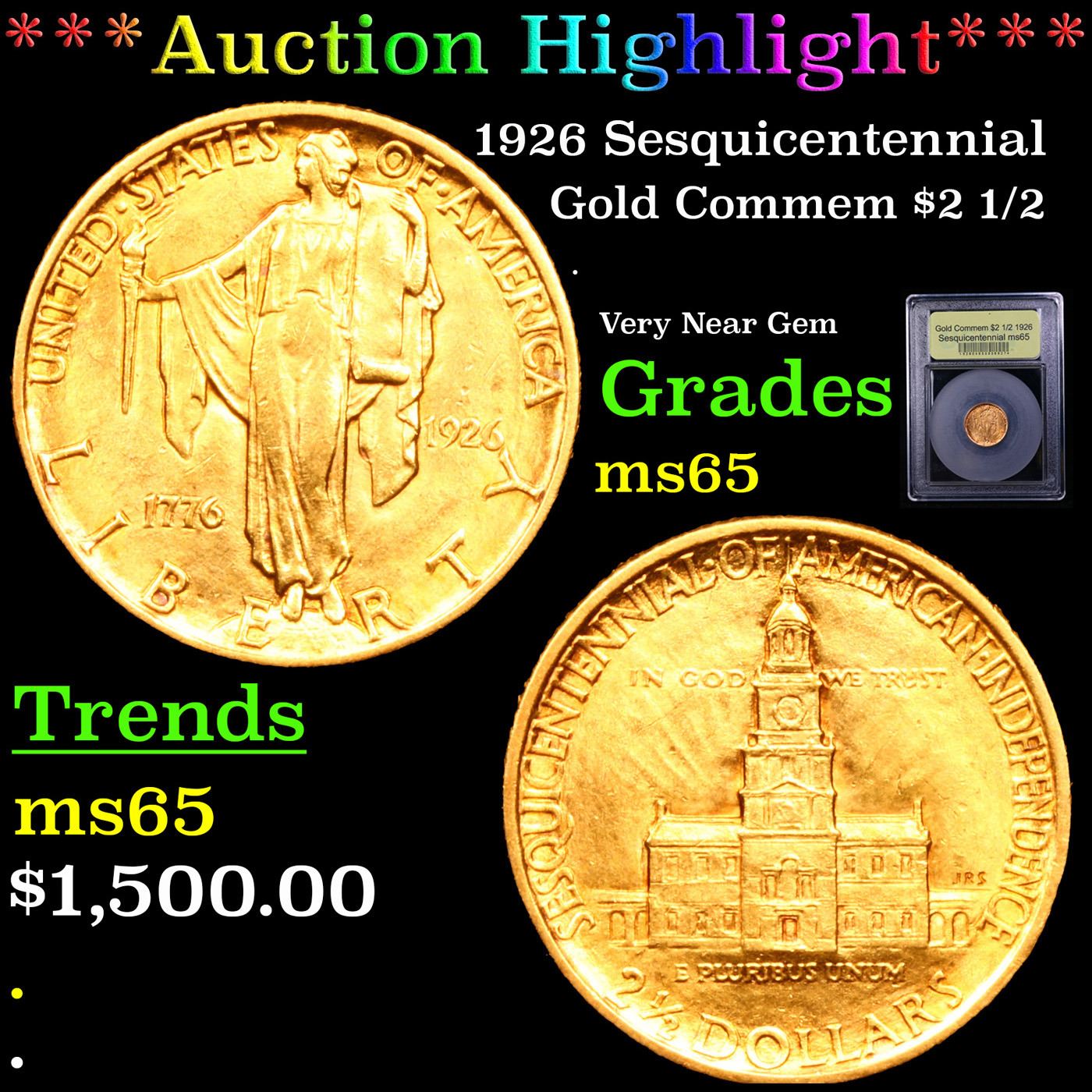 ***Auction Highlight*** 1926 Sesquicentennial Gold Commem $2 1/2 Graded GEM Unc BY USCG. A Key Date's Pick, Bid to Win Coin
