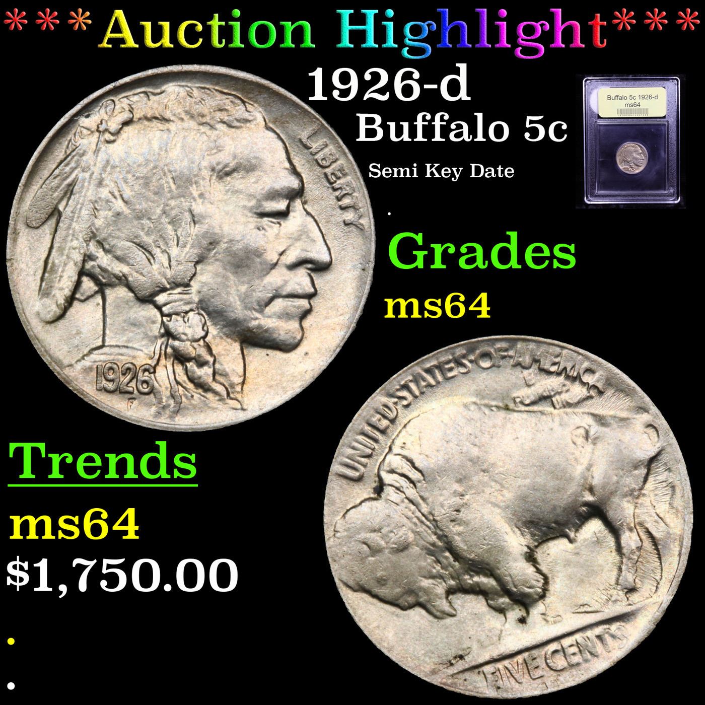 ***Auction Highlight*** 1926-d Buffalo Nickel 5c Graded Choice Unc By USCG. A Corey's Pick, Bid to Win, Don't let it get Away Coin