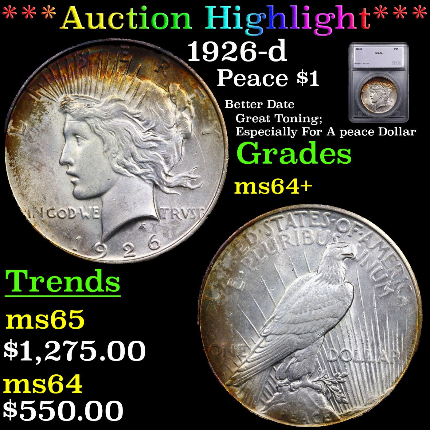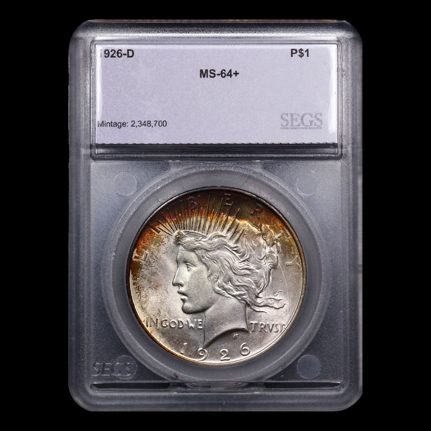 ***Auction Highlight*** 1926-d Peace Dollar $1 Graded ms64+ BY SEGS. A Corey's Pick, Bid to Win, Don't let it get Away, you might not find its equal Coin
