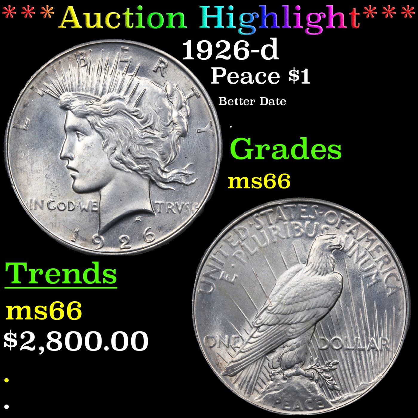 ***Auction Highlight*** 1926-d Peace Dollar $1 Grades GEM+ Unc By USCG. A Corey's Pick, Bid to Win, Don't let it get Away Coin
