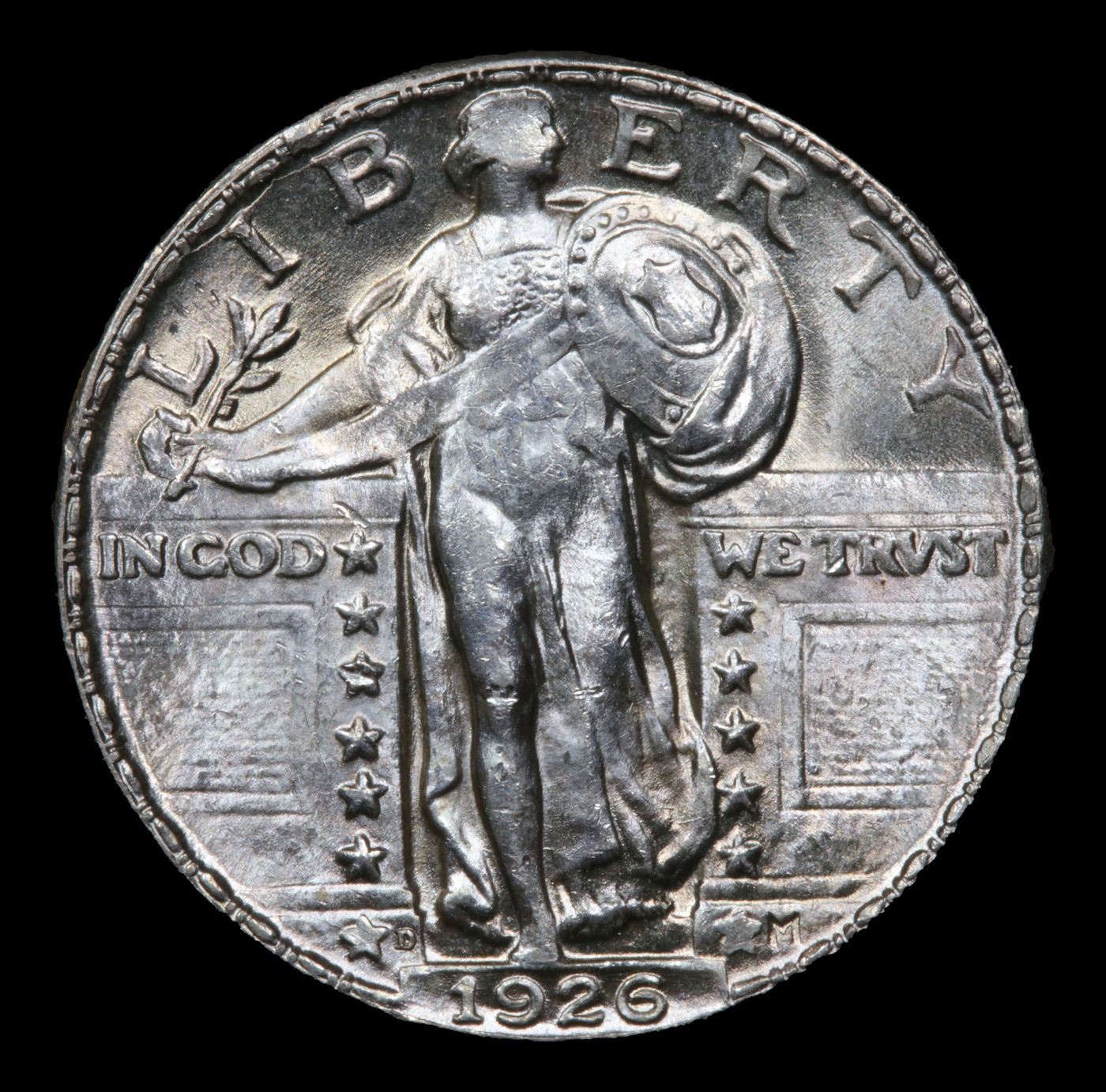 ***Auction Highlight*** 1926-d Standing Liberty Quarter 25c Graded GEM Unc By USCG. A mere 1,300 three dollar gold pieces were struck in 1871 -- one of the lowest mintages in the series to that point. This red-gold example shows softness on the cotton bolls and wreath knot, as often seen, but the rest of the design is strong. Lustrous with Virtually Fully Reflective Fields. To date only 1 coin has been Graded as PL, I think this example comes very close to PL. A Corey's Pick, Bid to Win Coin