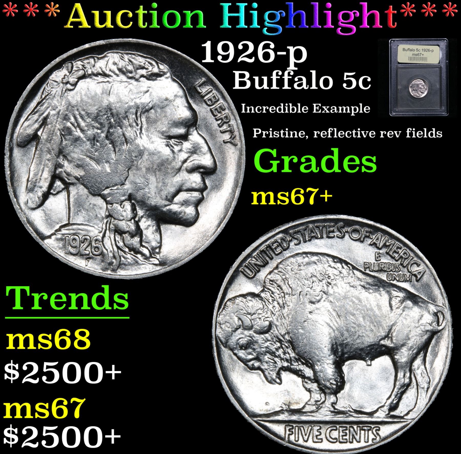 ***Auction Highlight*** 1926-p Buffalo Nickel 5c Graded Gem++ By USCG. Incredible Example; Pristine, reflective rev fields