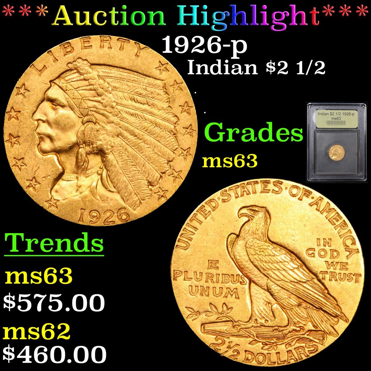 ***Auction Highlight*** 1926-p Gold Indian Quarter Eagle $2 1/2 Graded Select Unc By USCG. A Corey's Pick, Bid to Win Coin