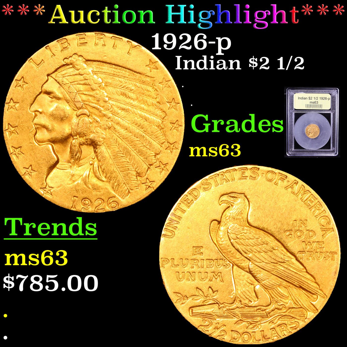 ***Auction Highlight*** 1926-p Gold Indian Quarter Eagle $2 1/2 Graded Select Unc By USCG (fc)