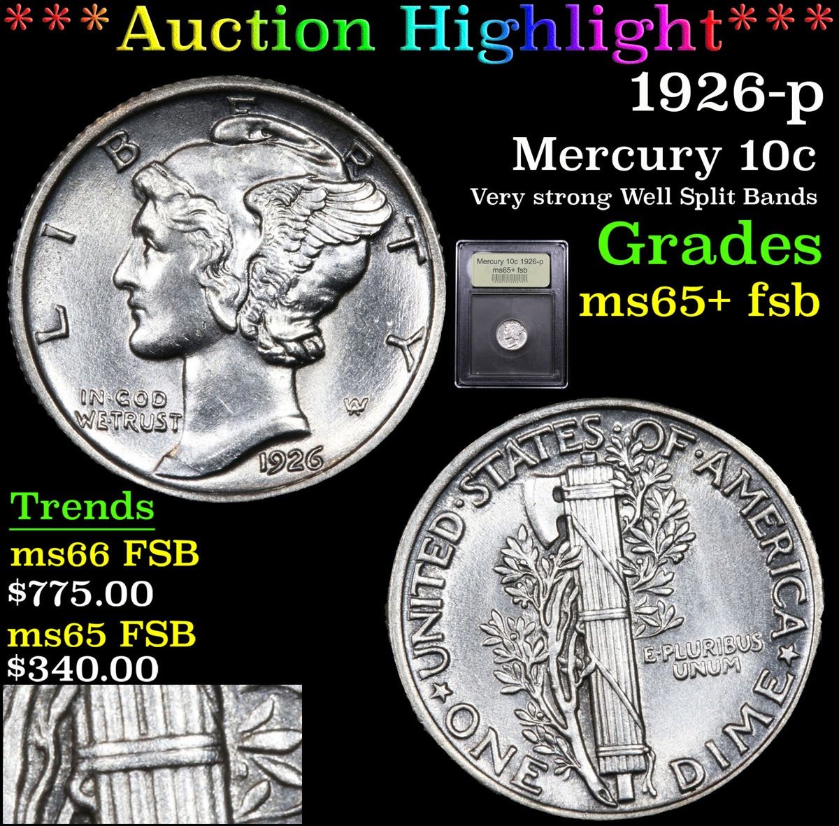 ***Auction Highlight*** 1926-p Very strong Well Split Bands . Mercury Dime 10c Graded GEM+ FSB By USCG. A Corey's Pick, Bid to Win Coin