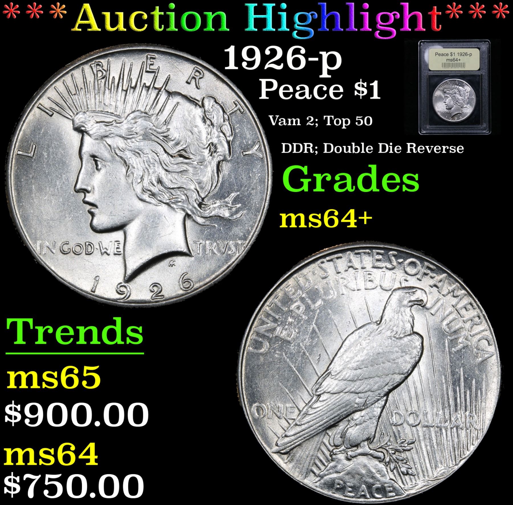 ***Auction Highlight*** 1926-p Peace Dollar $1 Graded Choice+ Unc By USCG. Vam 2; Top 50; DDR; Double Die Reverse A Corey's Pick, Bid to Win, Don't let it get Away Coin