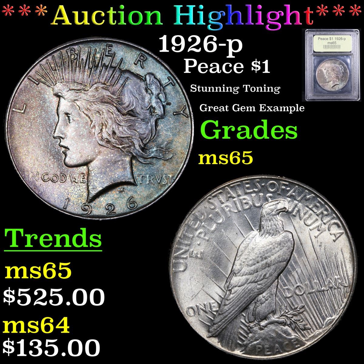 ***Auction Highlight*** 1926-p Stunning Toning Great Gem Example Peace Dollar $1 Graded GEM Unc By USCG. A Corey's Pick, Bid to Win Coin