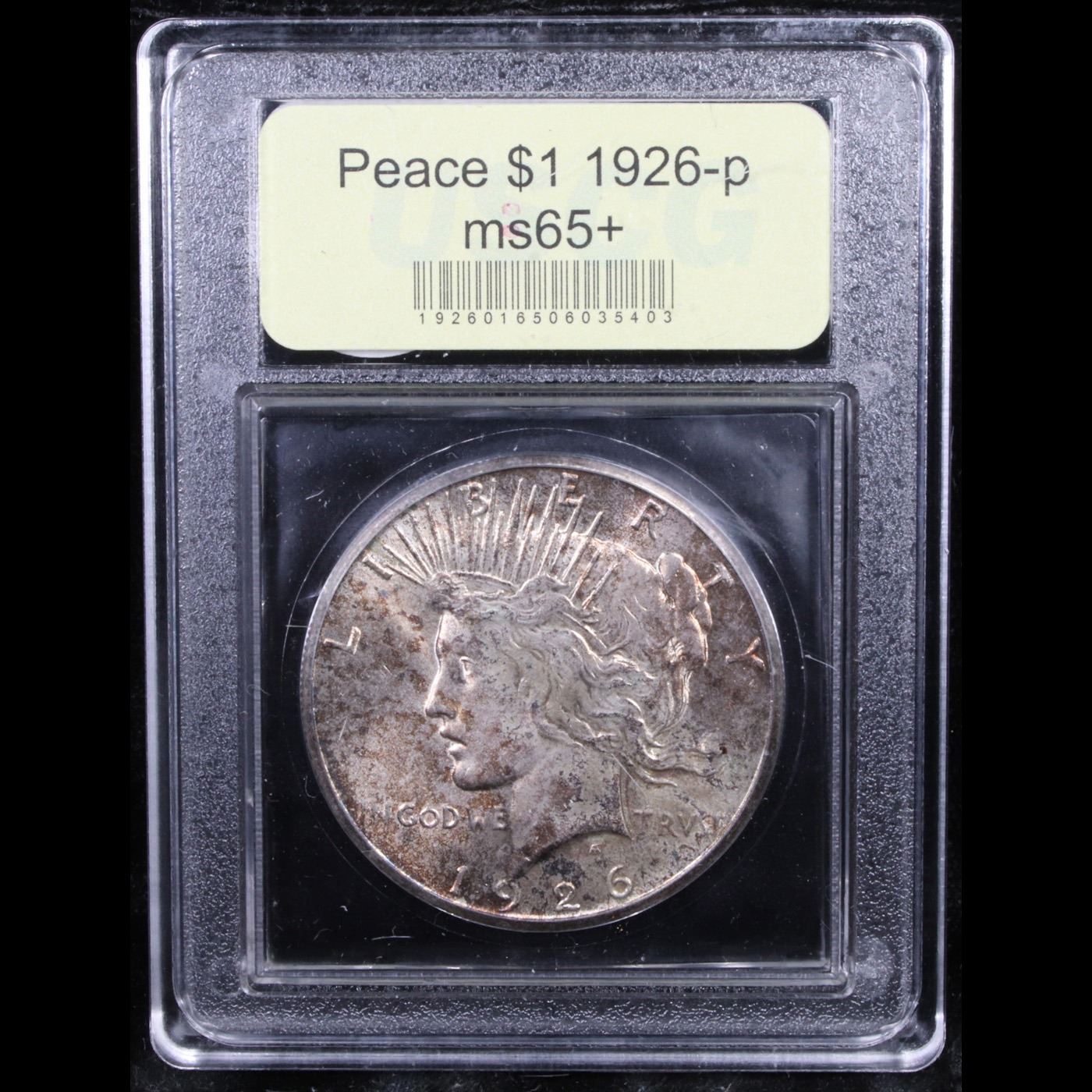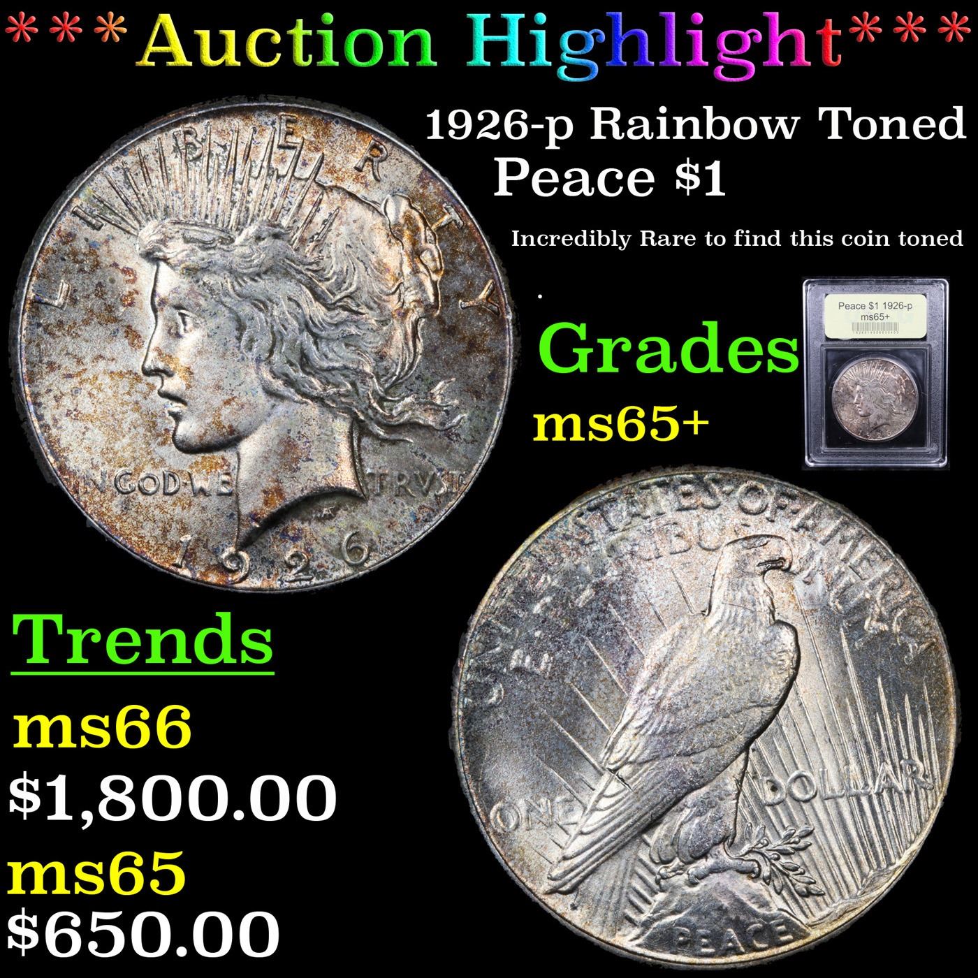 ***Auction Highlight*** 1926-p Rainbow Toned Peace Dollar $1 Graded GEM+ Unc BY USCG (fc)