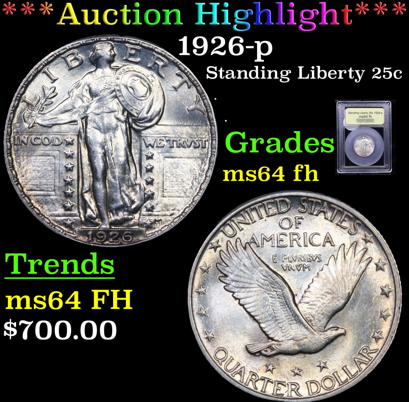 ***Auction Highlight*** 1926-p Standing Liberty Quarter 25c Graded Choice Unc FH By USCG (fc)