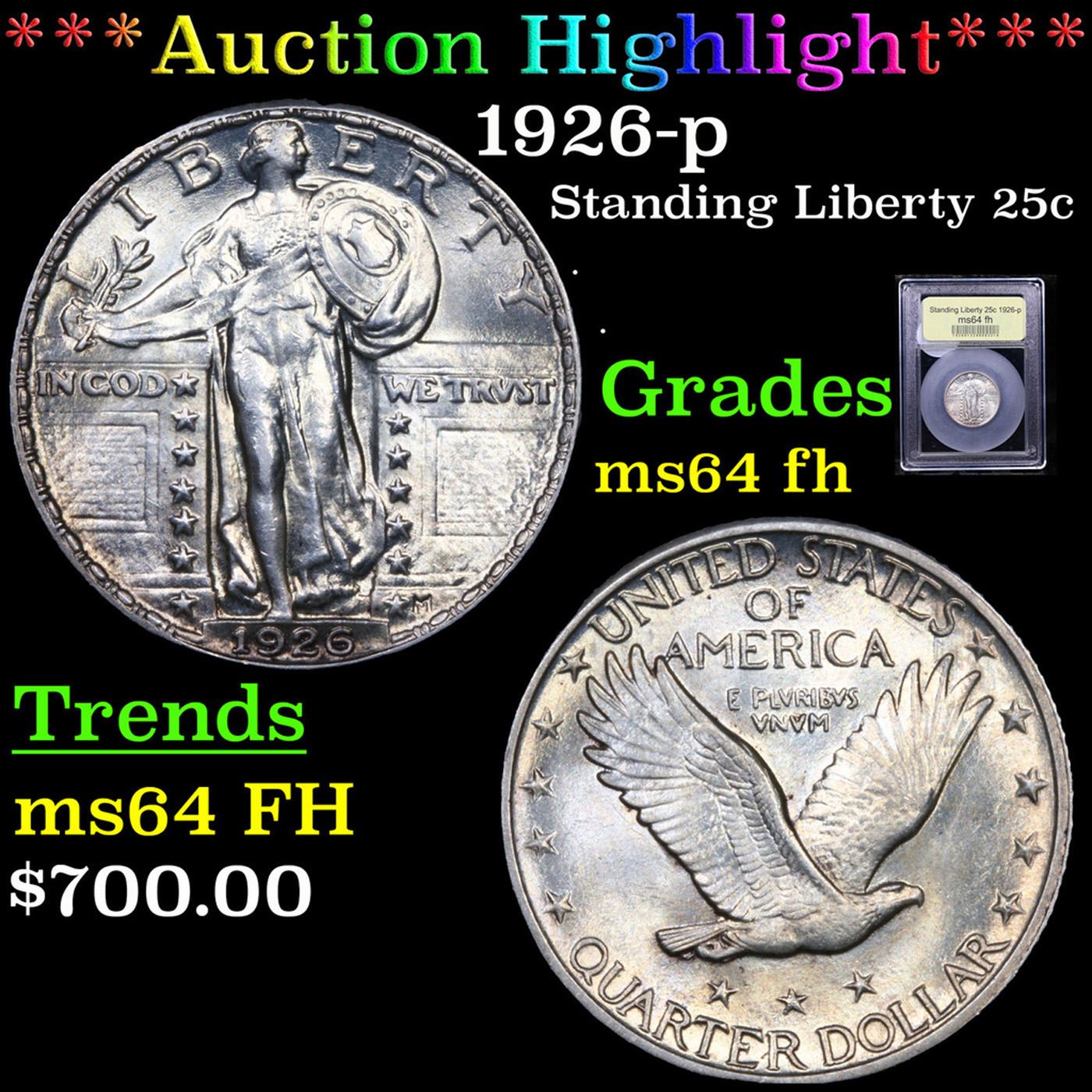 ***Auction Highlight*** 1926-p Standing Liberty Quarter 25c Graded Choice Unc FH By USCG.
