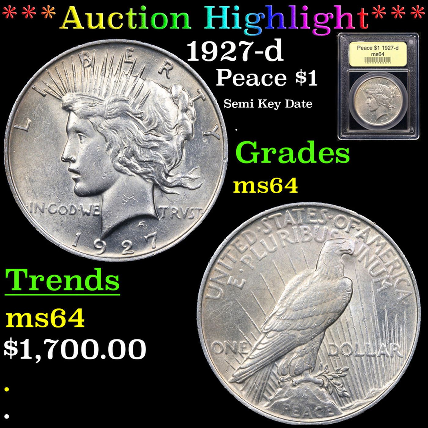 ***Auction Highlight*** 1927-d Peace Dollar $1 Graded Choice Unc BY USCG.