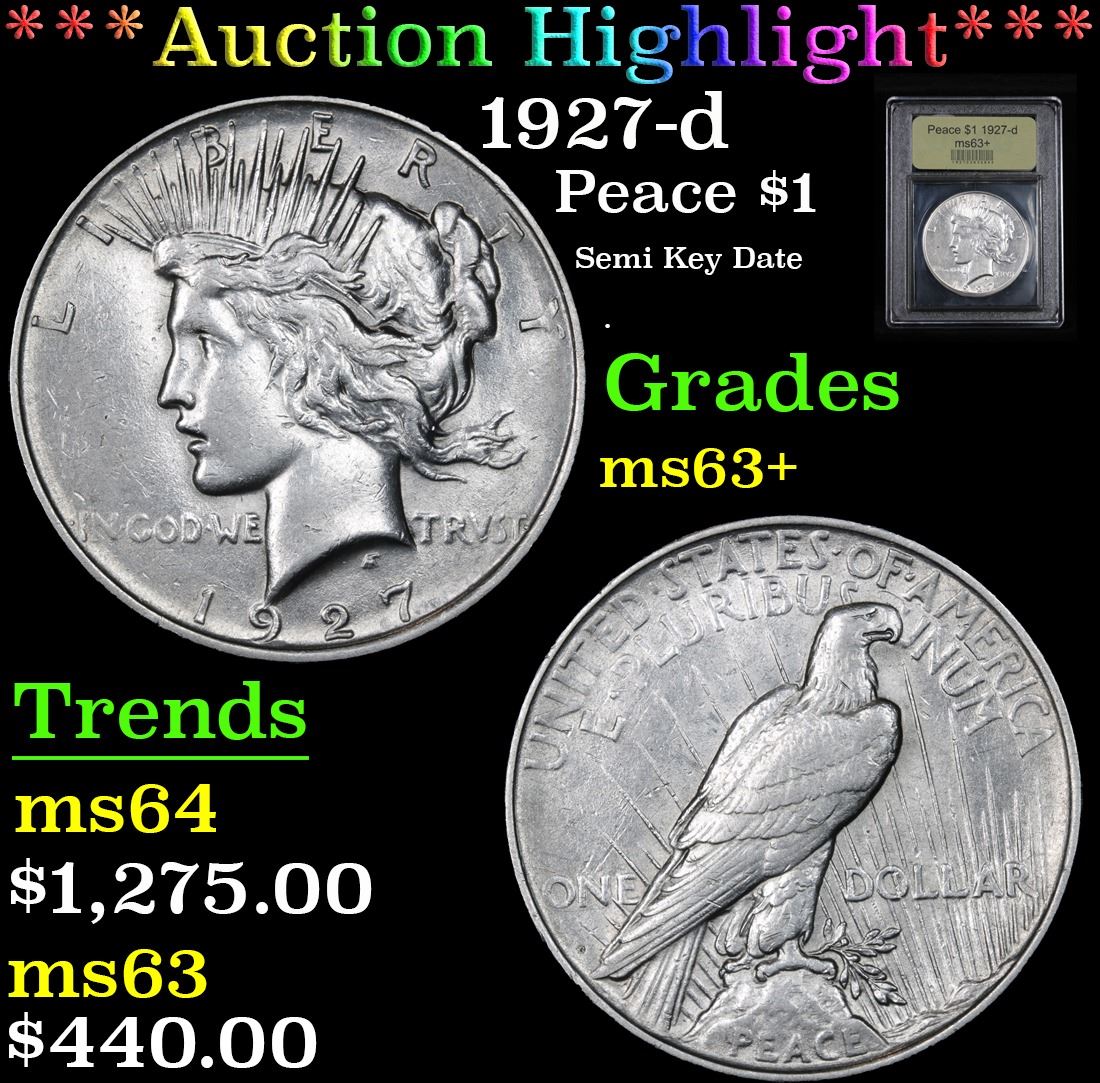 ***Auction Highlight*** 1927-d Peace Dollar $1 Graded Select+ Unc By USCG. Semi Key Date