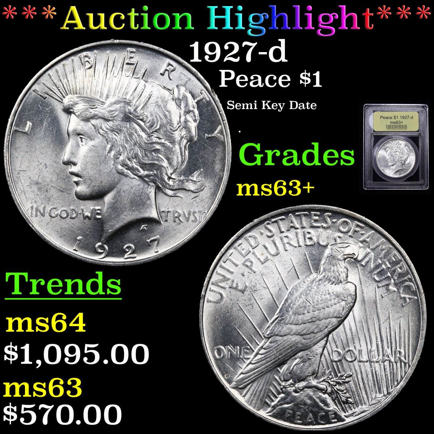 ***Auction Highlight*** 1927-d Peace Dollar $1 Graded Select+ Unc By USCG.