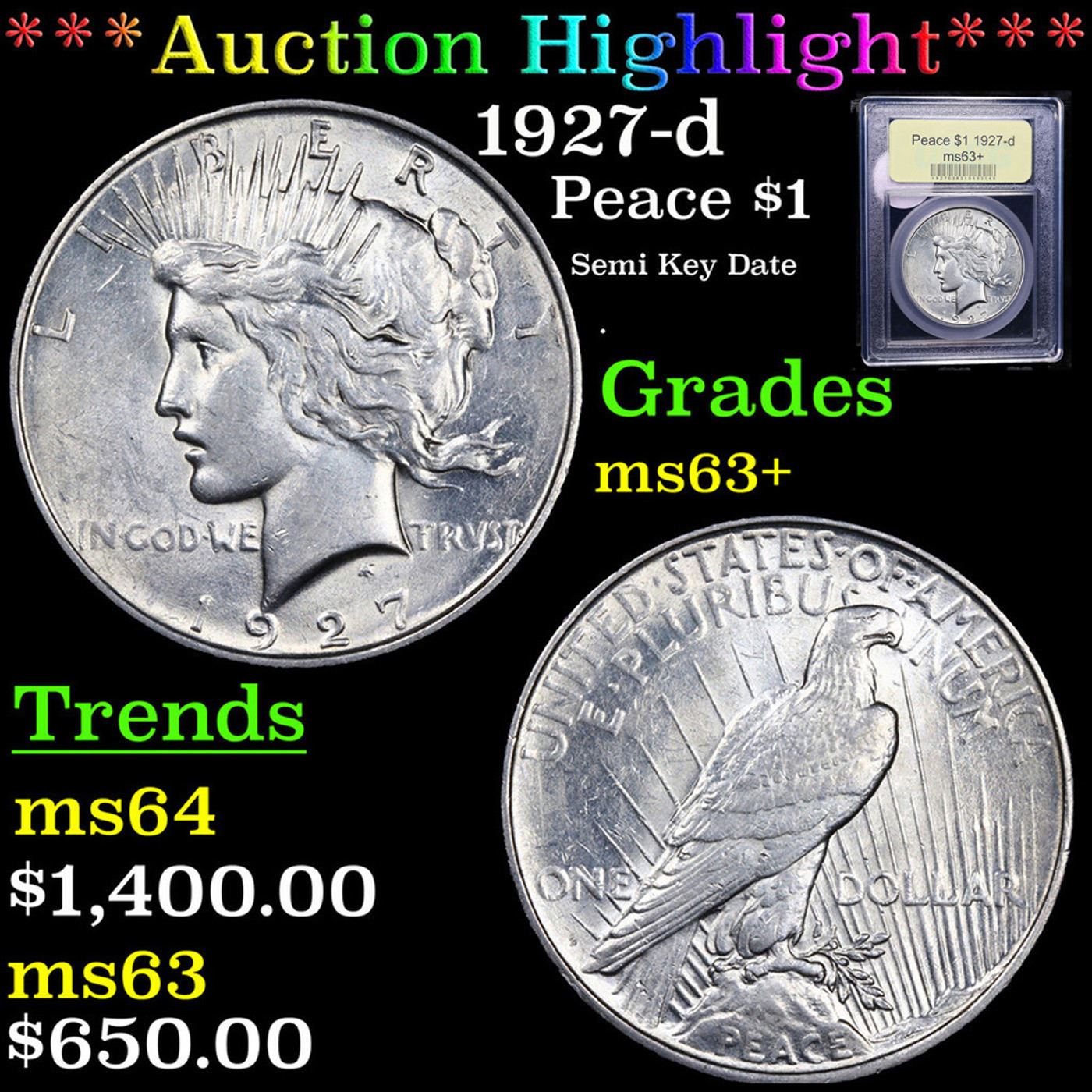 ***Auction Highlight*** 1927-d Peace Dollar $1 Graded Select+ Unc By USCG.