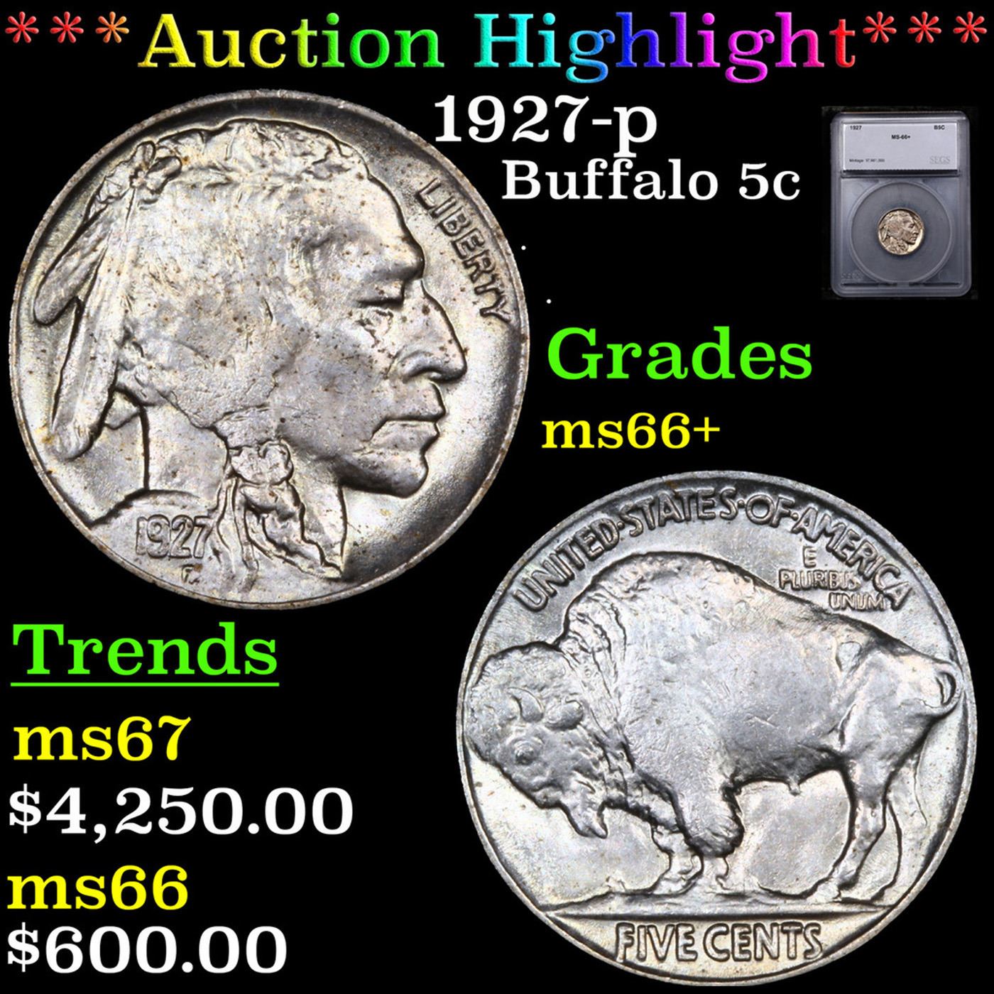 ***Auction Highlight*** 1927-p Buffalo Nickel 5c Graded ms66+ BY SEGS. A Corey's Pick, Bid to Win, Don't let it get Away, you might not find its equal Coin