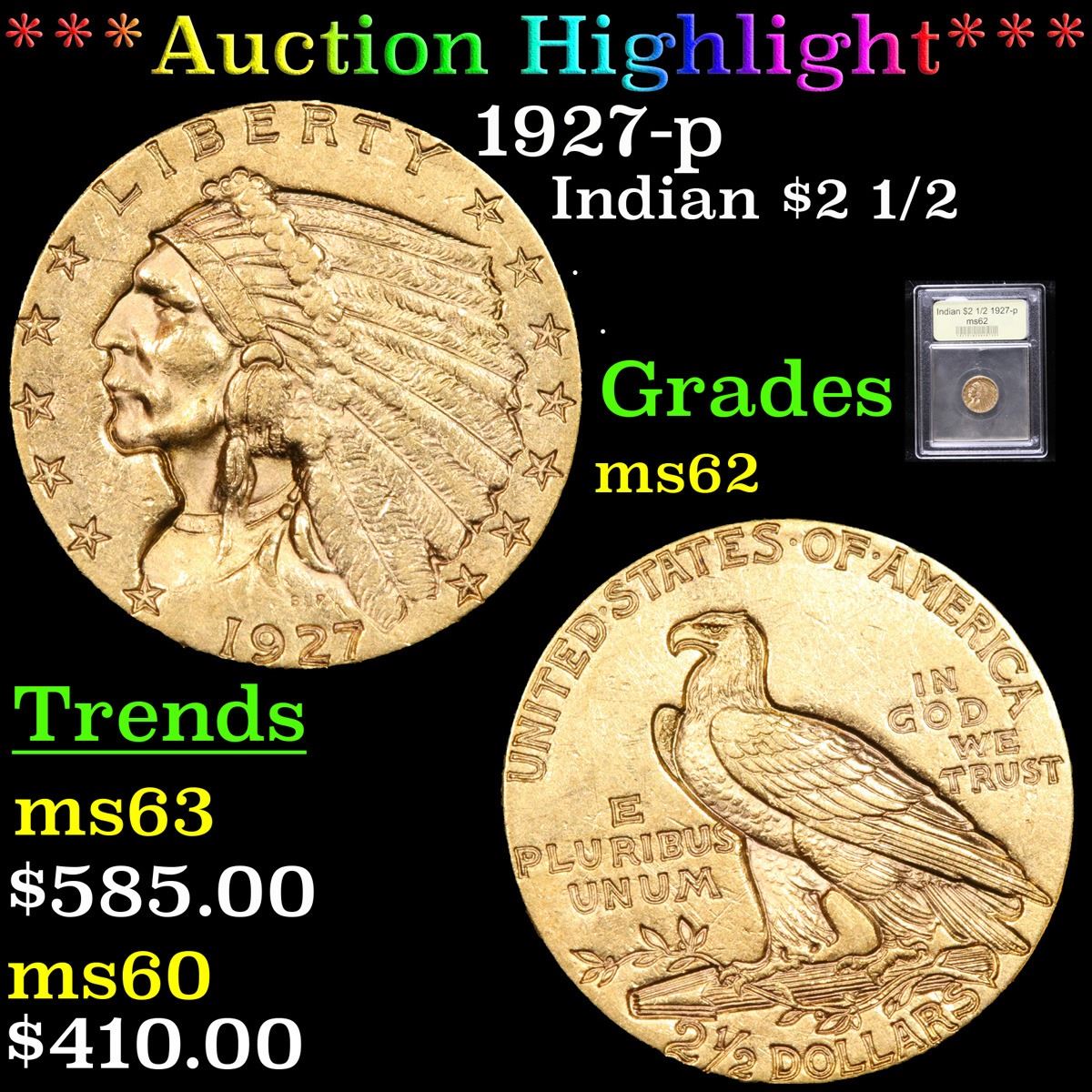 ***Auction Highlight*** 1927-p . . Gold Indian Quarter Eagle $2 1/2 Graded Select Unc By USCG. 0