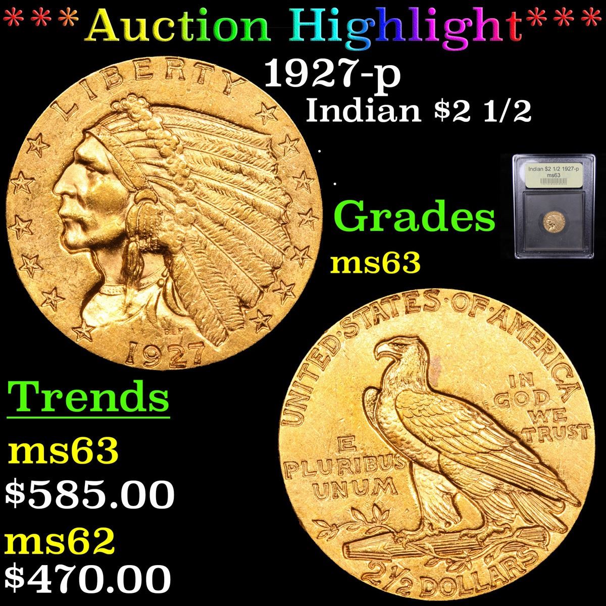 ***Auction Highlight*** 1927-p . . Gold Indian Quarter Eagle $2 1/2 Graded Select Unc By USCG.