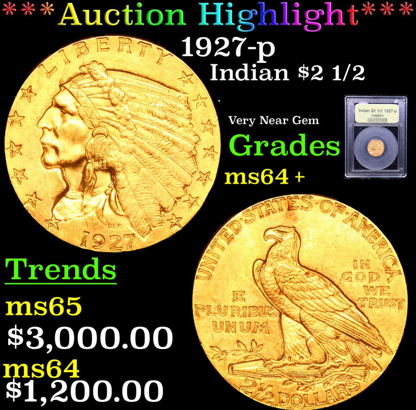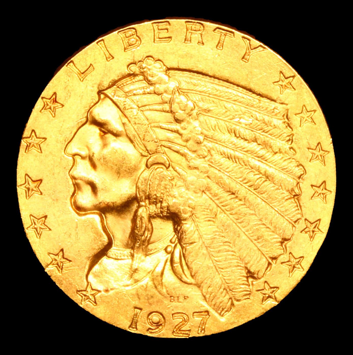 ***Auction Highlight*** 1927-p Gold Indian Quarter Eagle 2.5 Graded Choice+ Unc by USCG.