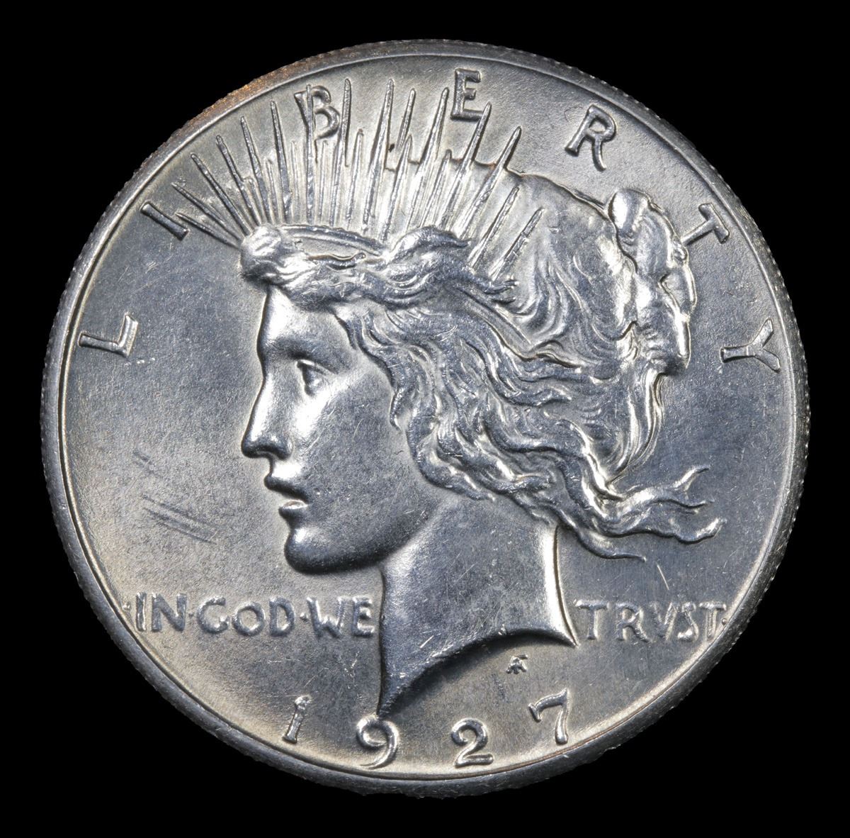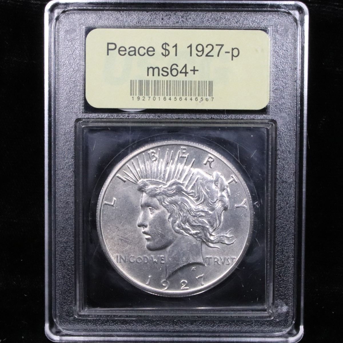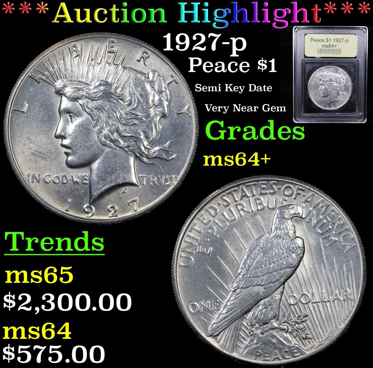 ***Auction Highlight*** 1927-p Peace Dollar $1 Graded Choice+ Unc By USCG. The 27-p is the big sleeper of numismatics in my opinion. It has the 2nd lowest mintage in the whole Peace dollar series. Lower than the 34-s, the 21-p, yet it does not command its proper value. Good coin to own multiple of and save, in my opinion, but if you've been coming to our auctions for a while you will have seen that this has always been my opinion. A Corey's Pick, Bid to Win Coin