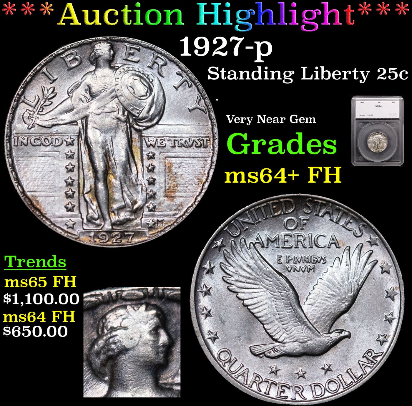 ***Auction Highlight*** 1927-p Standing Liberty Quarter 25c Graded ms64+ FH By SEGS.