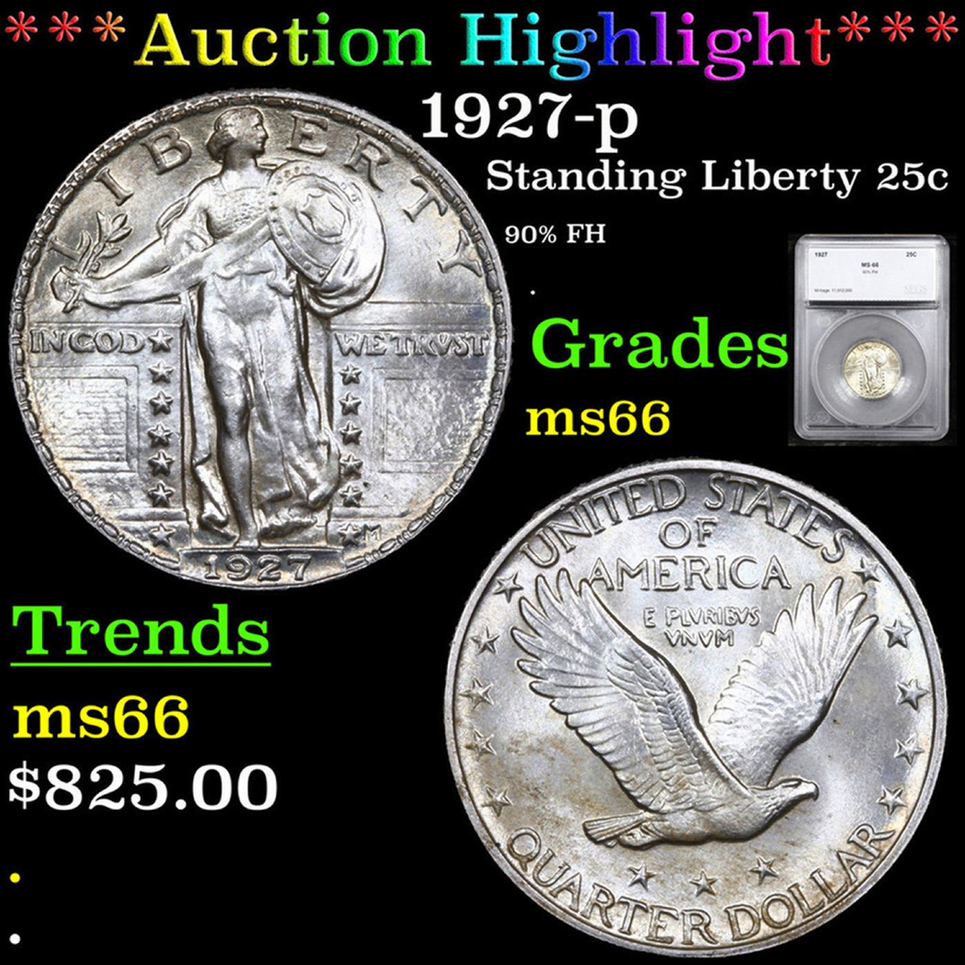 ***Auction Highlight*** 1927-p Standing Liberty Quarter 25c Graded ms66 By SEGS.