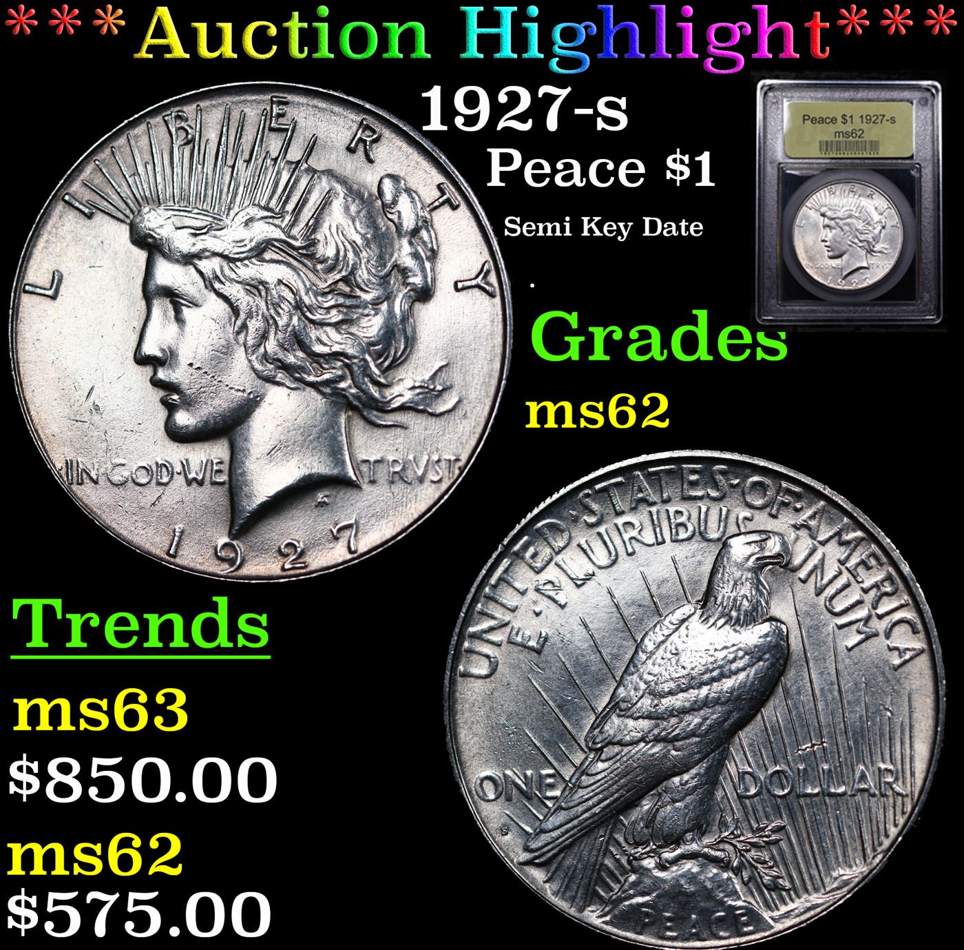 ***Auction Highlight*** 1927-s Peace Dollar $1 Graded Select Unc BY USCG.