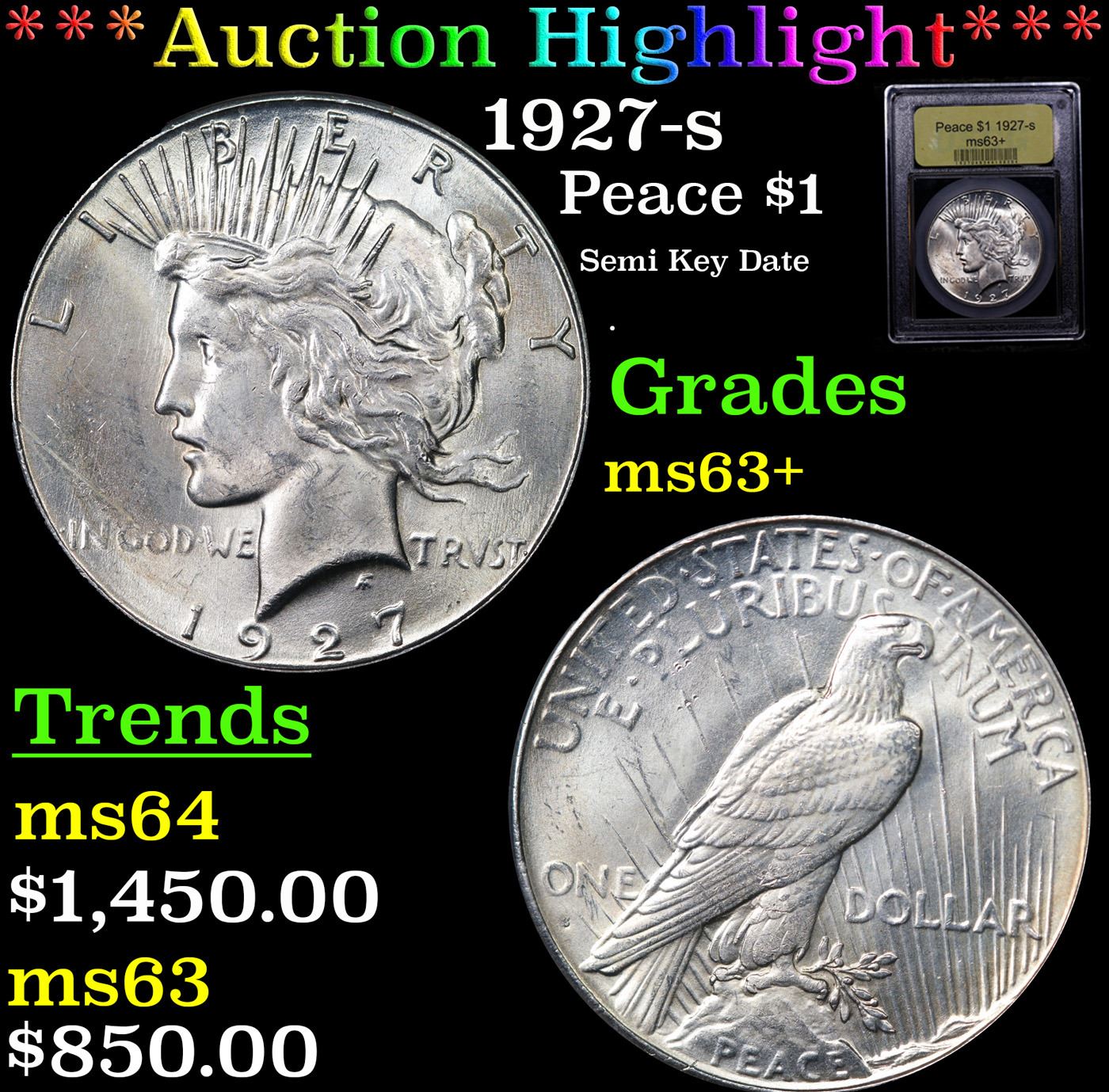 ***Auction Highlight*** 1927-s Peace Dollar $1 Graded Select+ Unc BY USCG.