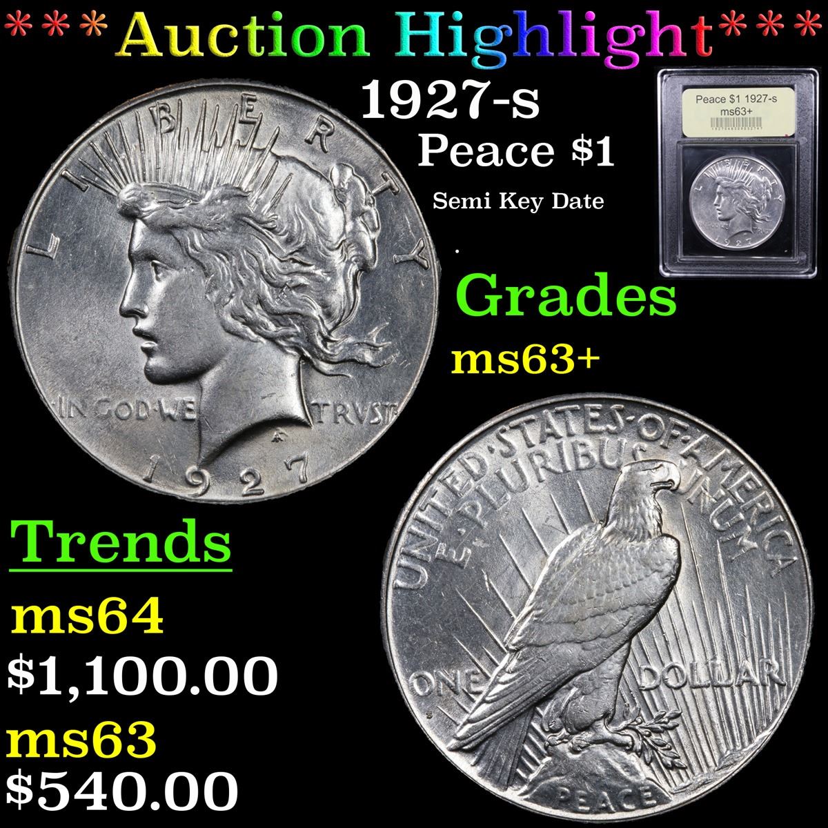 ***Auction Highlight*** 1927-s Peace Dollar $1 Graded Select+ Unc By USCG. A Corey's Pick, Bid to Win Coin