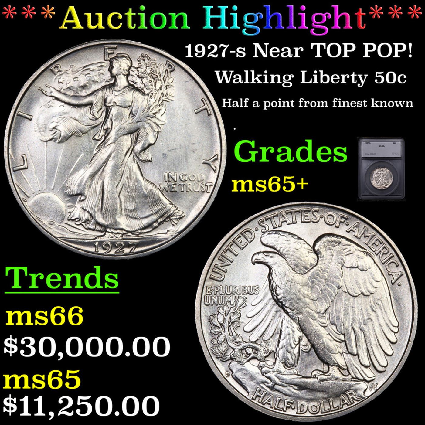***Auction Highlight*** 1927-s Near TOP POP! Walking Liberty Half Dollar 50c Graded ms65+ BY SEGS. Per David Hall of PCGS "The 1927-S is scarce in higher circulated grades, rare in mint state, and very rare in Gem condition" A Corey's Pick, Bid to Win, Don't let it get Away, you might not find its equal Coin. I give this coin my highest recommendation