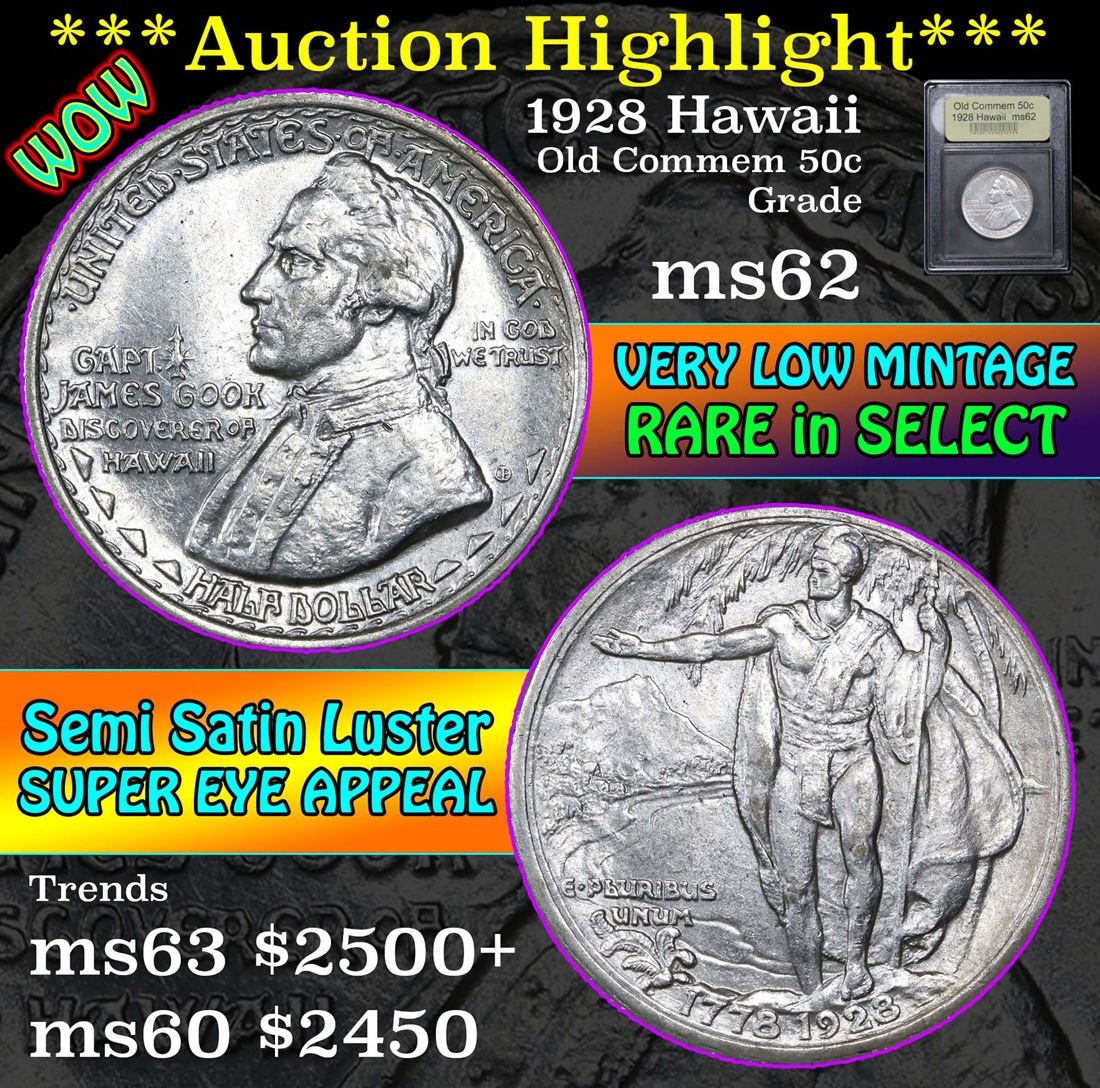 ***Auction Highlight*** 1928 Hawaii Old Commem Half Dollar 50c Graded Select Unc By USCG.