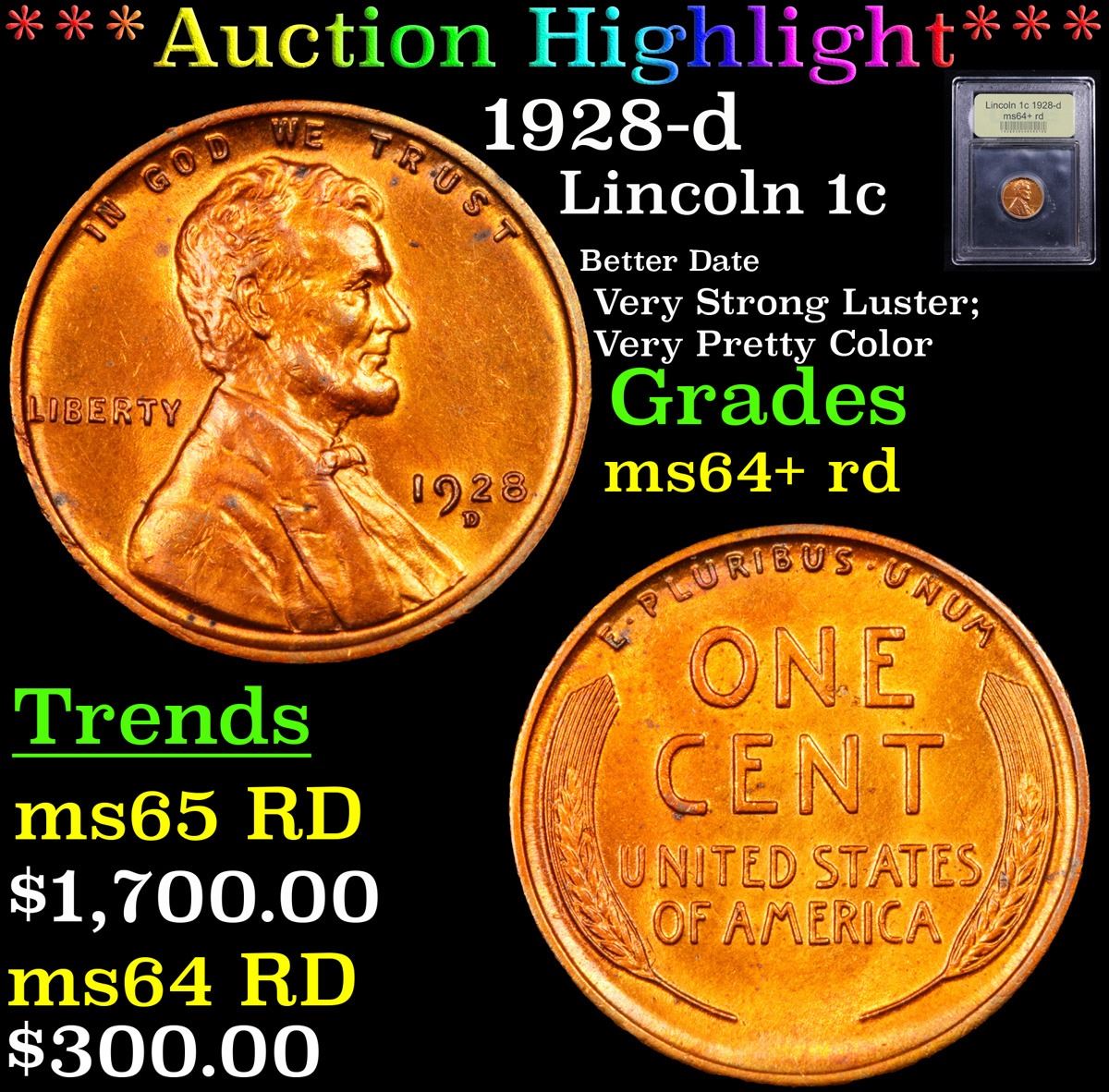 ***Auction Highlight*** 1928-d Lincoln Cent 1c Graded Choice+ Unc RD By USCG.