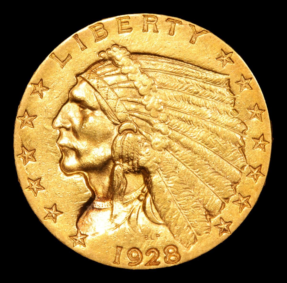 ***Auction Highlight*** 1928-p . . Gold Indian Quarter Eagle $2 1/2 Graded Select+ Unc By USCG.