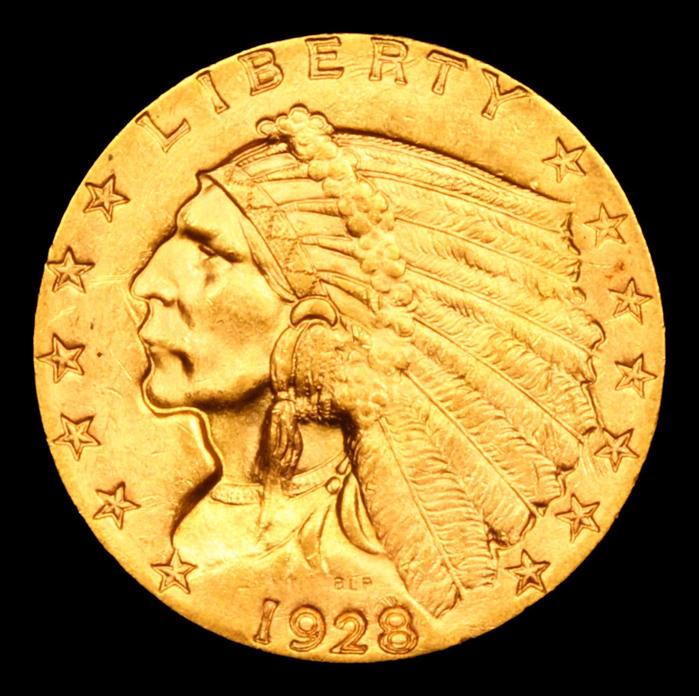 ***Auction Highlight*** 1928-p Gold Indian Quarter Eagle $2 1/2 Graded Select+ Unc By USCG.