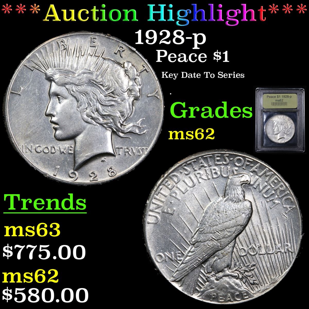 ***Auction Highlight*** 1928-p Peace Dollar $1 Graded Select Unc By USCG. Incredibly scarce date, lowest mintage in the entire Peace Dollar Series. Scarce in all grades. A Corey's Pick, Bid to Win Coin