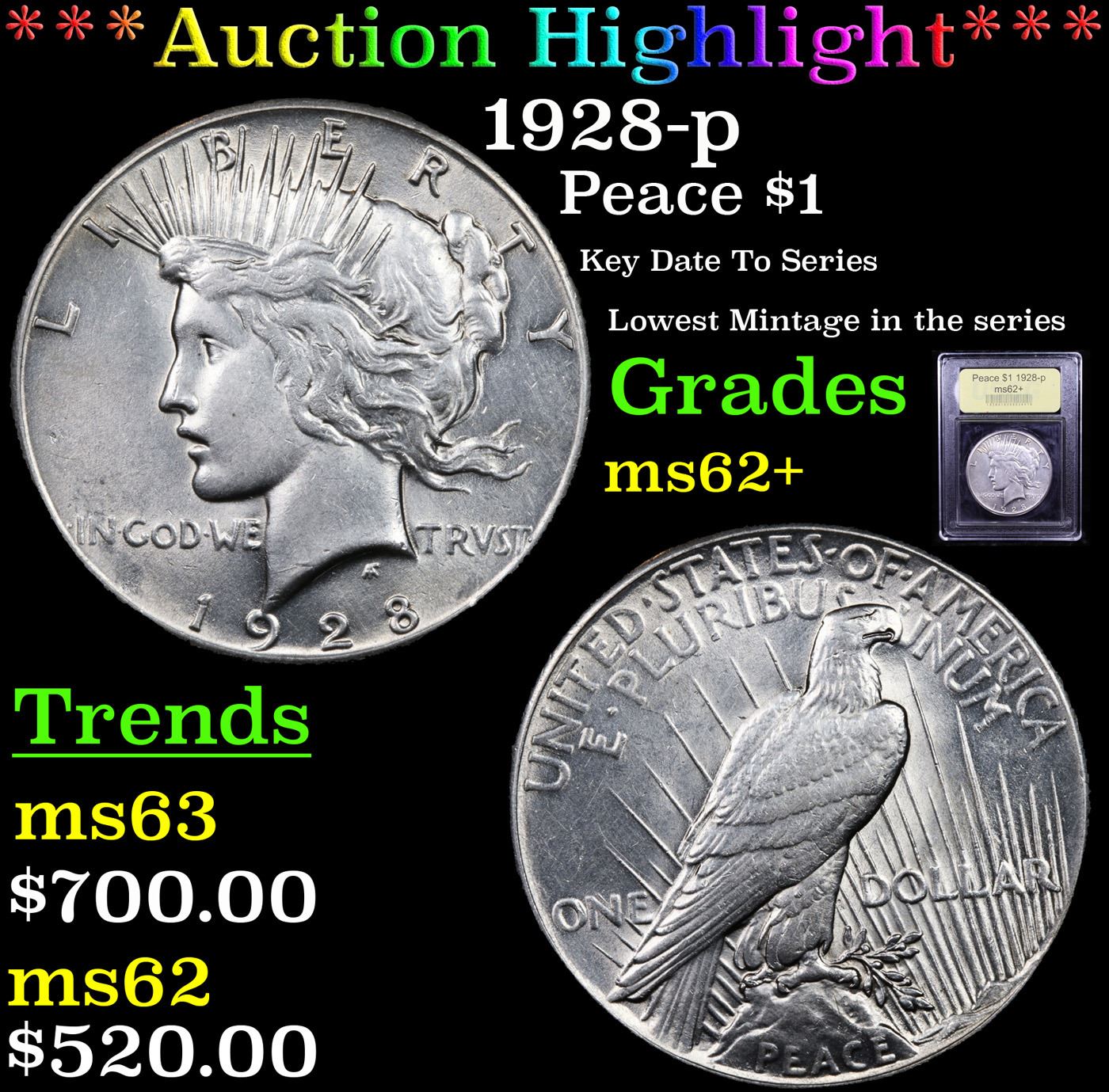 ***Auction Highlight*** 1928-p Peace Dollar $1 Graded Select Unc By USCG. Incredibly scarce date, lowest mintage in the entire Peace Dollar Series. Scarce in all grades. A Corey's Pick, Bid to Win Coin