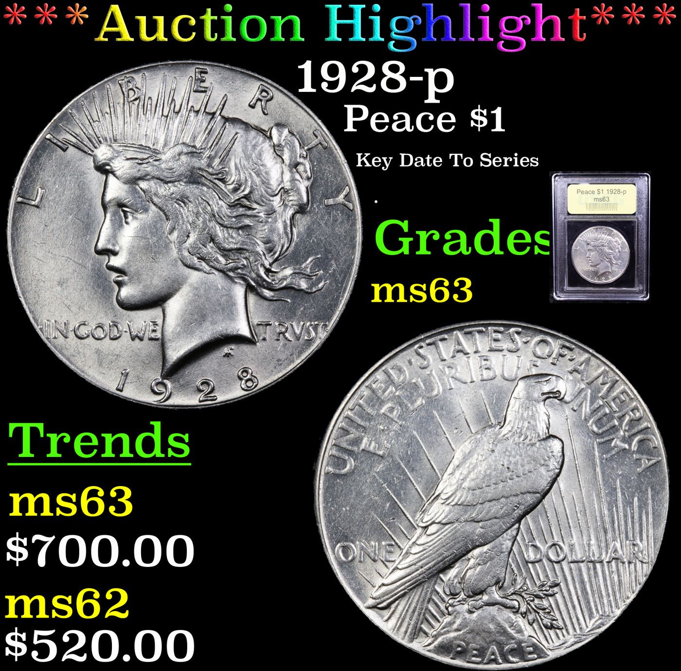 ***Auction Highlight*** 1928-p Peace Dollar $1 Graded Select Unc By USCG. Incredibly scarce date, lowest mintage in the entire Peace Dollar Series. Scarce in all grades. 0