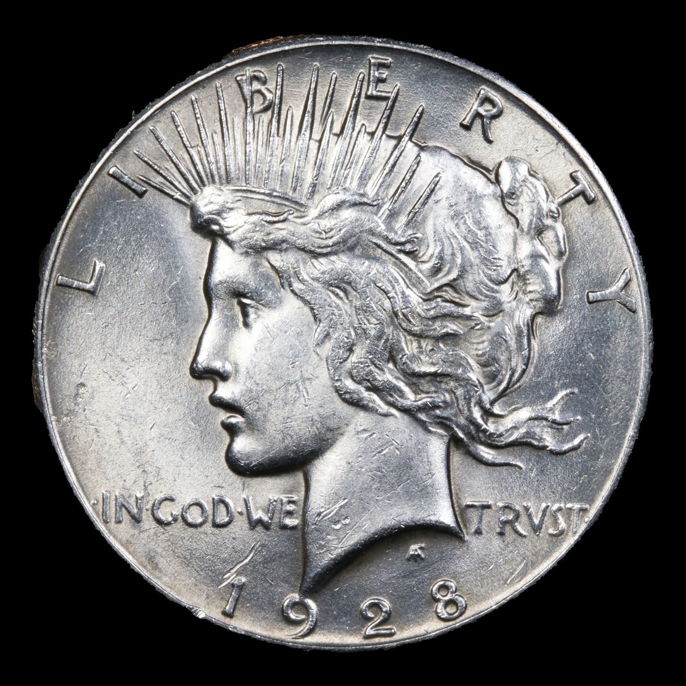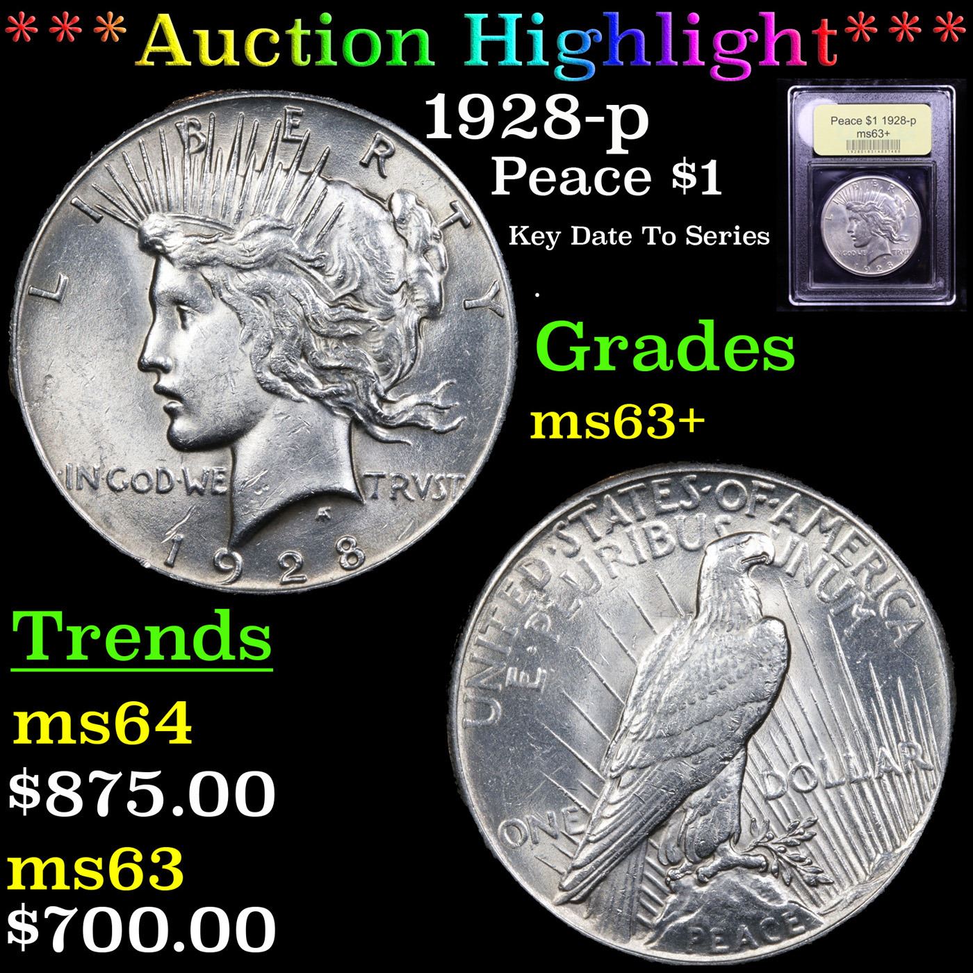 ***Auction Highlight*** 1928-p Peace Dollar $1 Graded Select+ Unc By USCG. Incredibly scarce date, lowest mintage in the entire Peace Dollar Series. Scarce in all grades. A Corey's Pick, Bid to Win Coin
