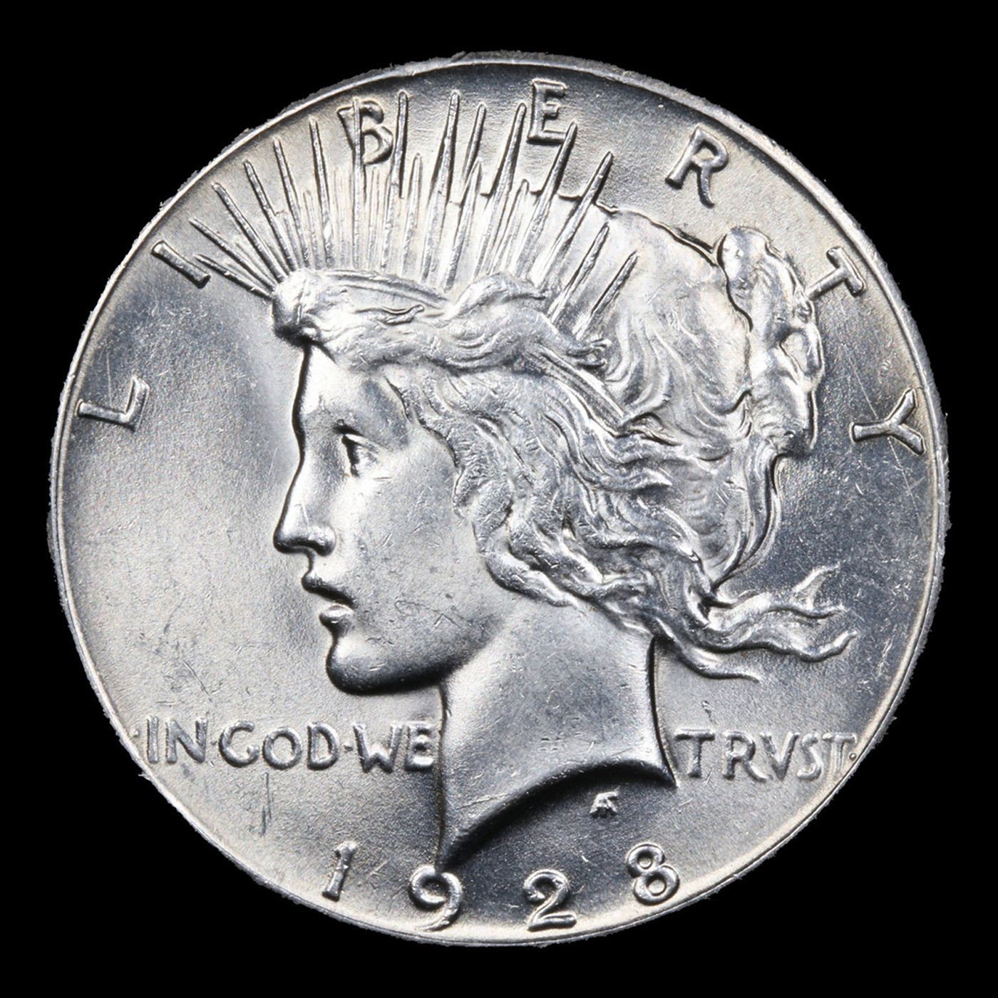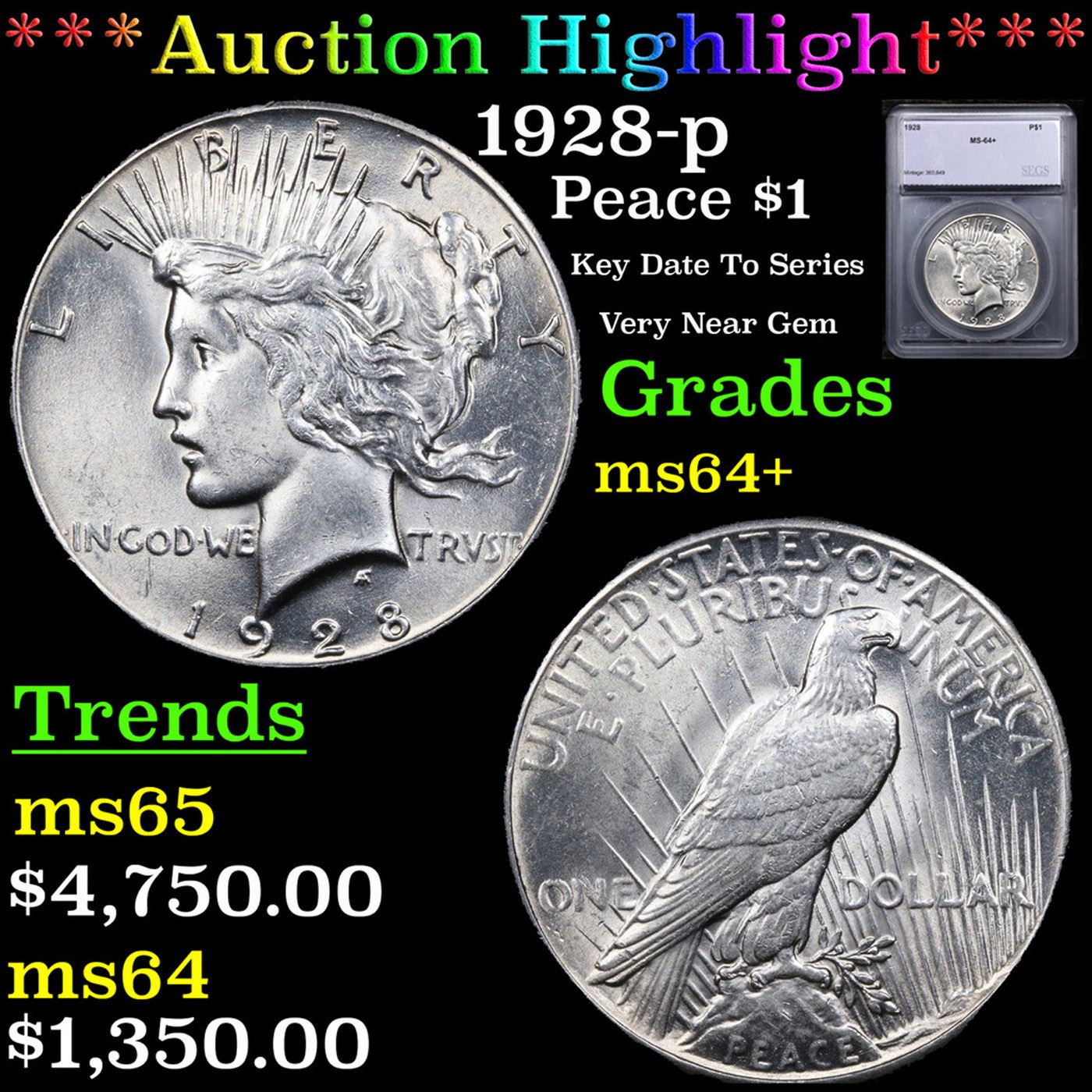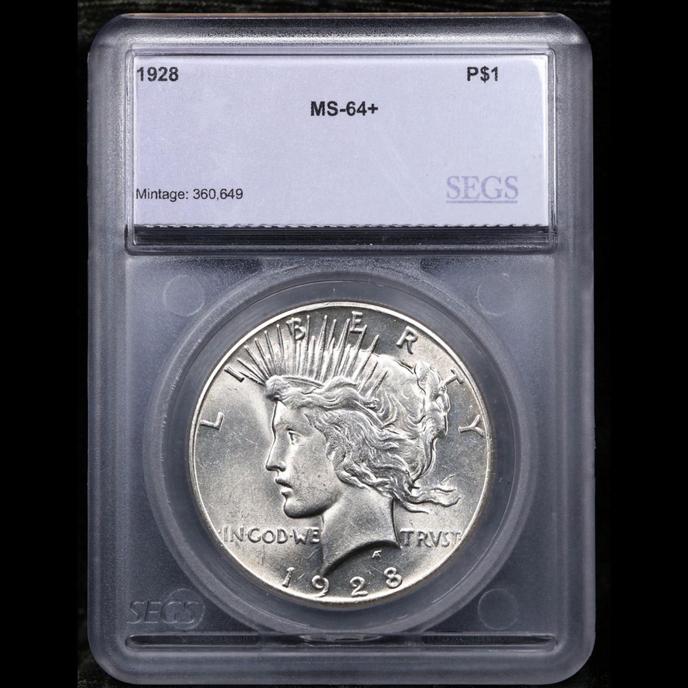 ***Auction Highlight*** 1928-p Peace Dollar $1 Graded ms64+ By SEGS. Incredibly scarce date, lowest mintage in the entire Peace Dollar Series. Scarce in all grades.