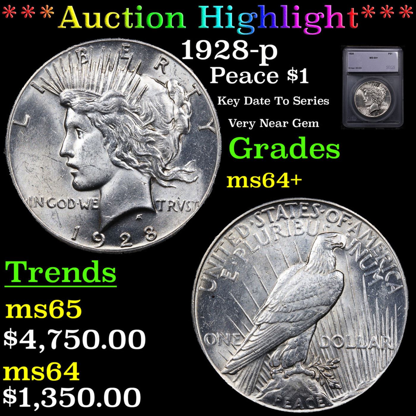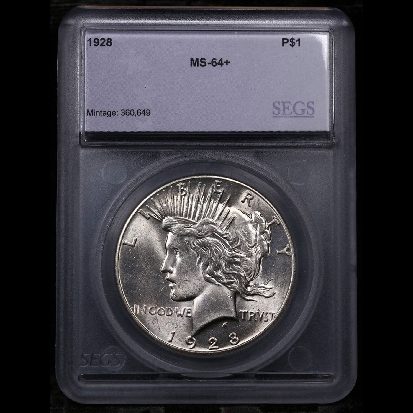 ***Auction Highlight*** 1928-p Peace Dollar $1 Graded ms64+ By SEGS. Incredibly scarce date, lowest mintage in the entire Peace Dollar Series. Scarce in all grades. A Corey's Pick, Bid to Win Coin