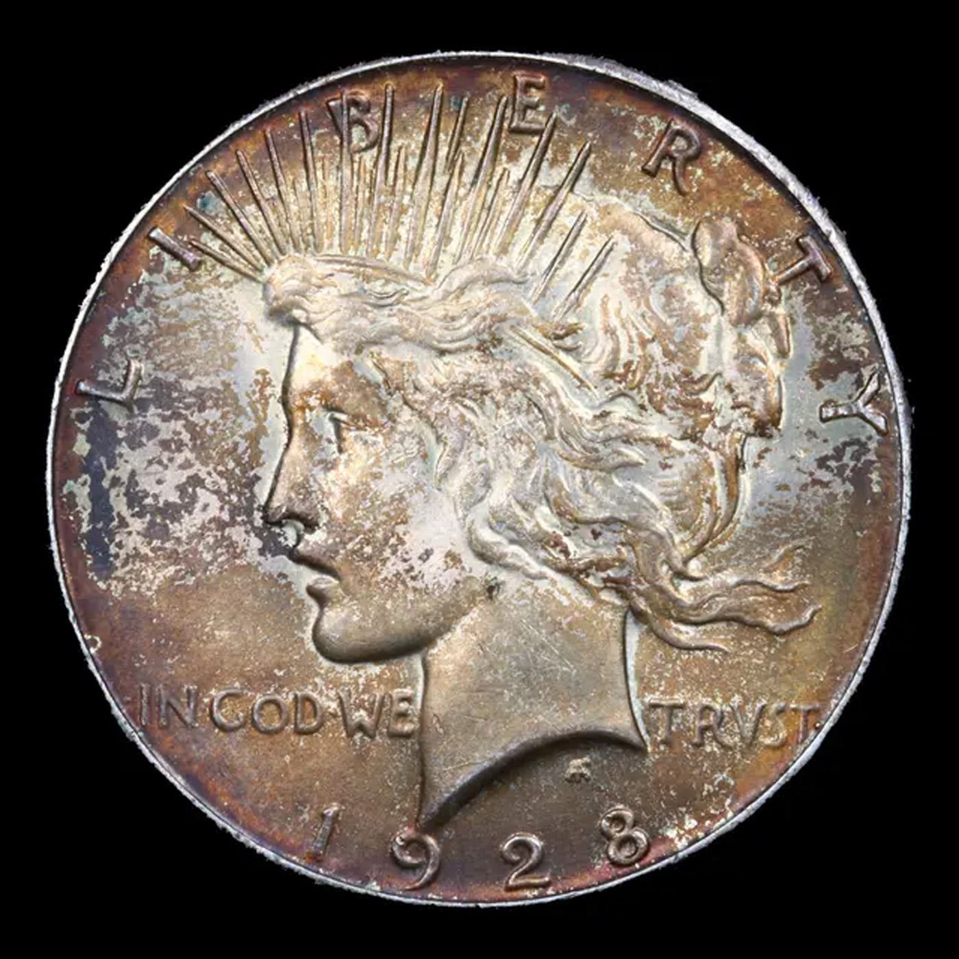 ***Auction Highlight*** 1928-p Peace Dollar Colorfully Toned $1 Graded ms64+ By SEGS (fc)