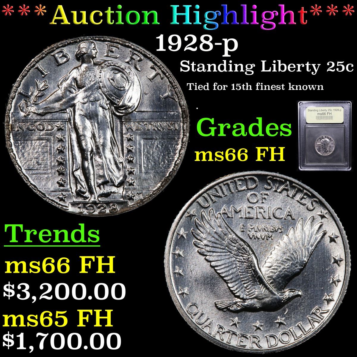 ***Auction Highlight*** 1928-p Standing Liberty Quarter 25c Graded GEM+ FH BY USCG.        A flashy delight. The strike is sharp, the luster is unquenchable, and the eye appeal delivers in spades. Silver-gray throughout with a touch here and there of deeper highlights primarily on the reverse. As choice as you're apt to find at this lofty Gem category, and well worth a very significant bid. A Corey's Pick, Bid to Win, Don't let it get Away, you might not find its equal Coin.  I give this coin my highest recommendation