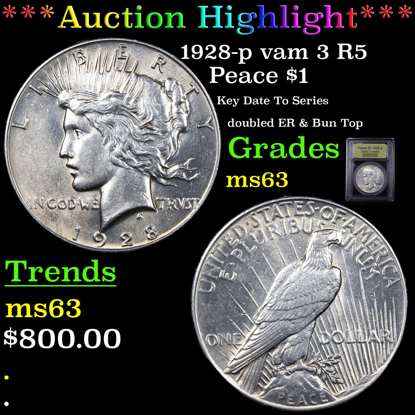 ***Auction Highlight*** 1928-p vam 3 I2 R5 Peace Dollar $1 Graded Select Unc By USCG (fc)