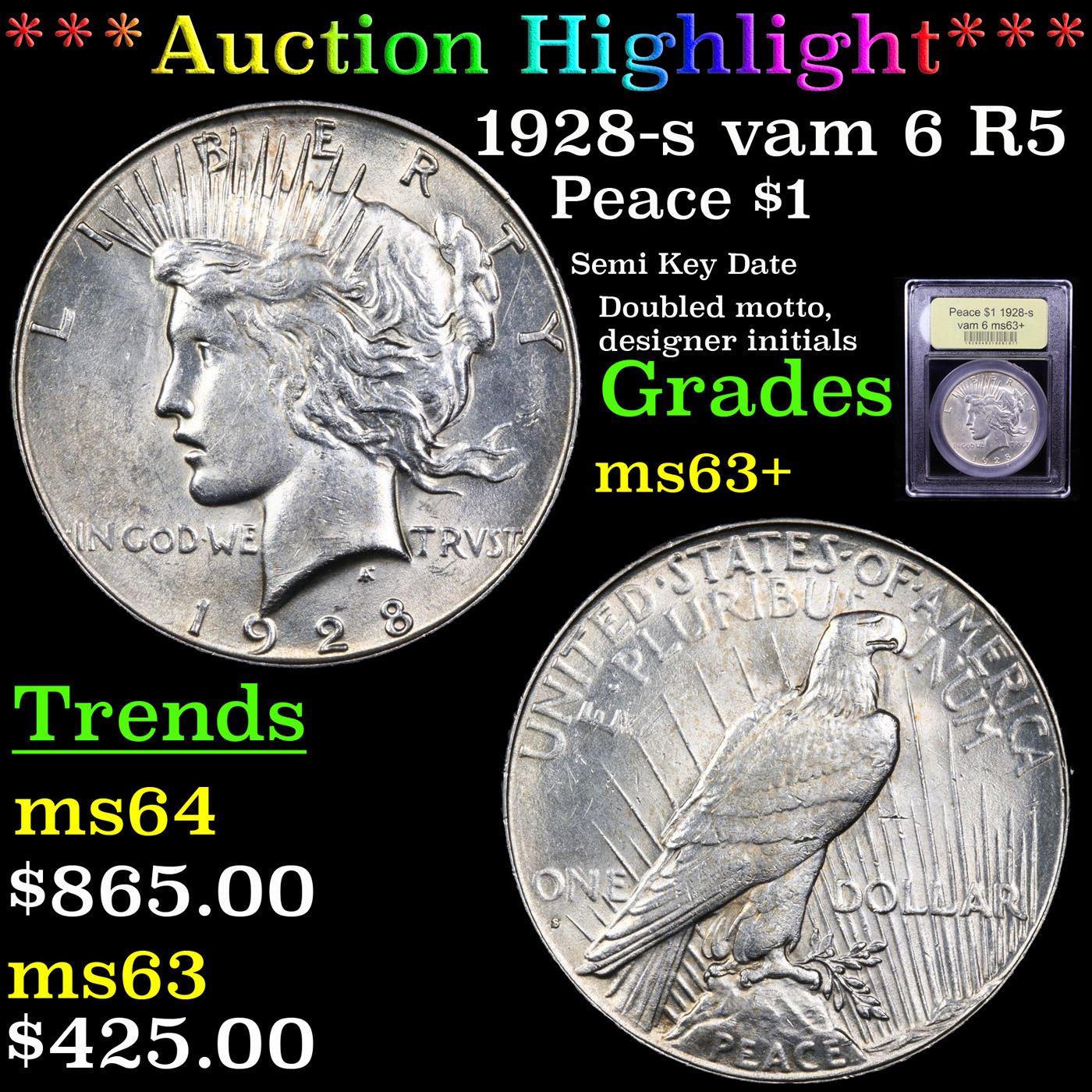 ***Auction Highlight*** 1928-s vam 6 R5 Peace Dollar $1 Graded Select+ Unc By USCG.